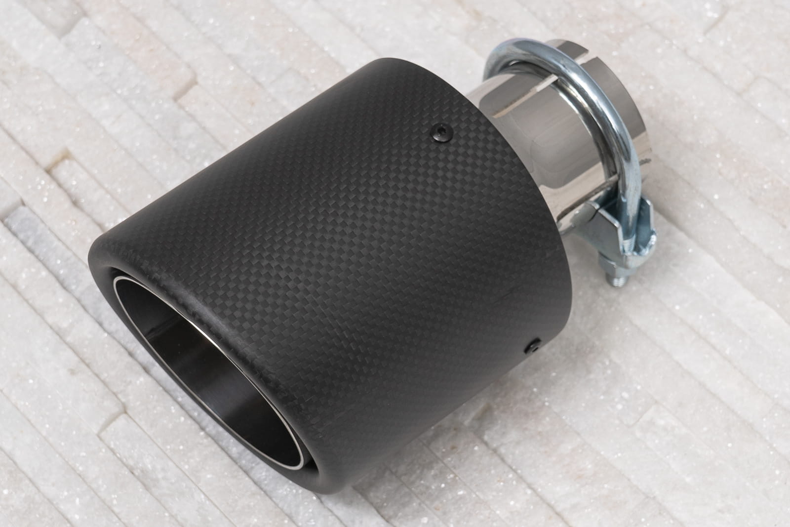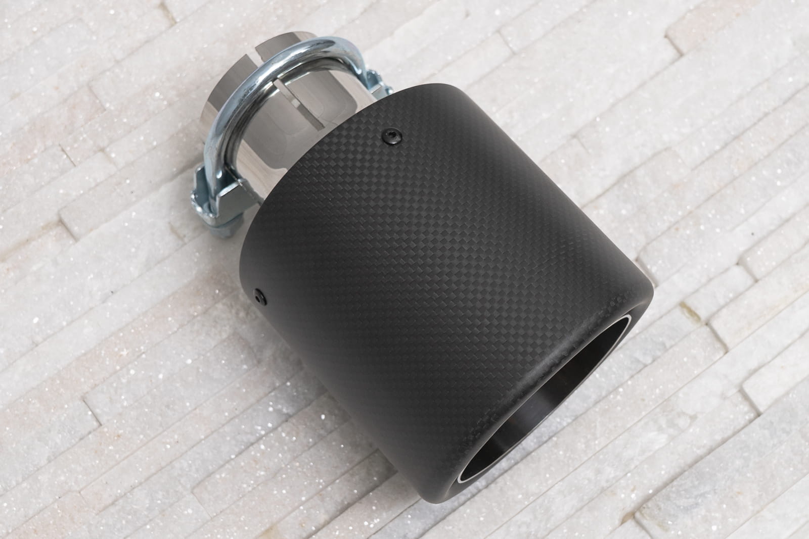 Montaż odbywa się poprzez nałożenie elementu na oryginalną rurę wydechu oraz dokręcenie znajdujących się w zestawie śrub, mocujących końcówkę na stałe. Zalecamy montaż profesjonalny.