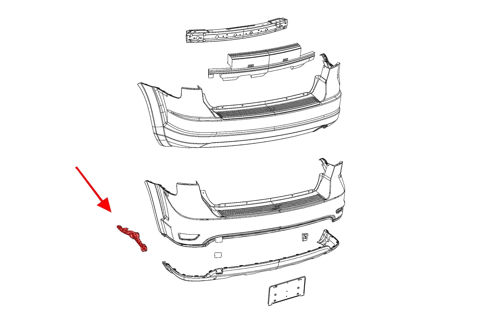FIAT FREEMONT 2011-2015 ŚLIZG TYLNEGO ZDERZAKA LEWY 5178413AF