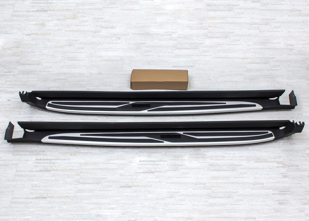 W zestawie komplet stopni bocznych (prawy i lewy), elementy montażowe oraz instrukcja. Progi montowane są na fabrycznych punktach montażowych. Montaż stopni nie wymaga wiercenia dodatkowych otworów! Zalecamy profesjonalny montaż w warsztacie (z doświadczenia wiemy że najlepiej skorzystać z usług zakładu lakierniczego lub blacharskiego ponieważ to te zakłady zajmują się najczęściej montażem listew, dokładek oraz stopni, więc montaż dla tych zakładów jest czynnością intuicyjną).