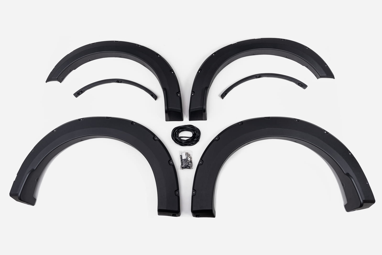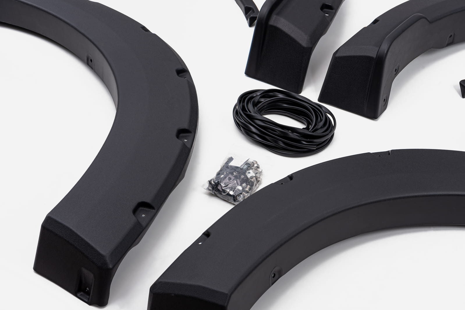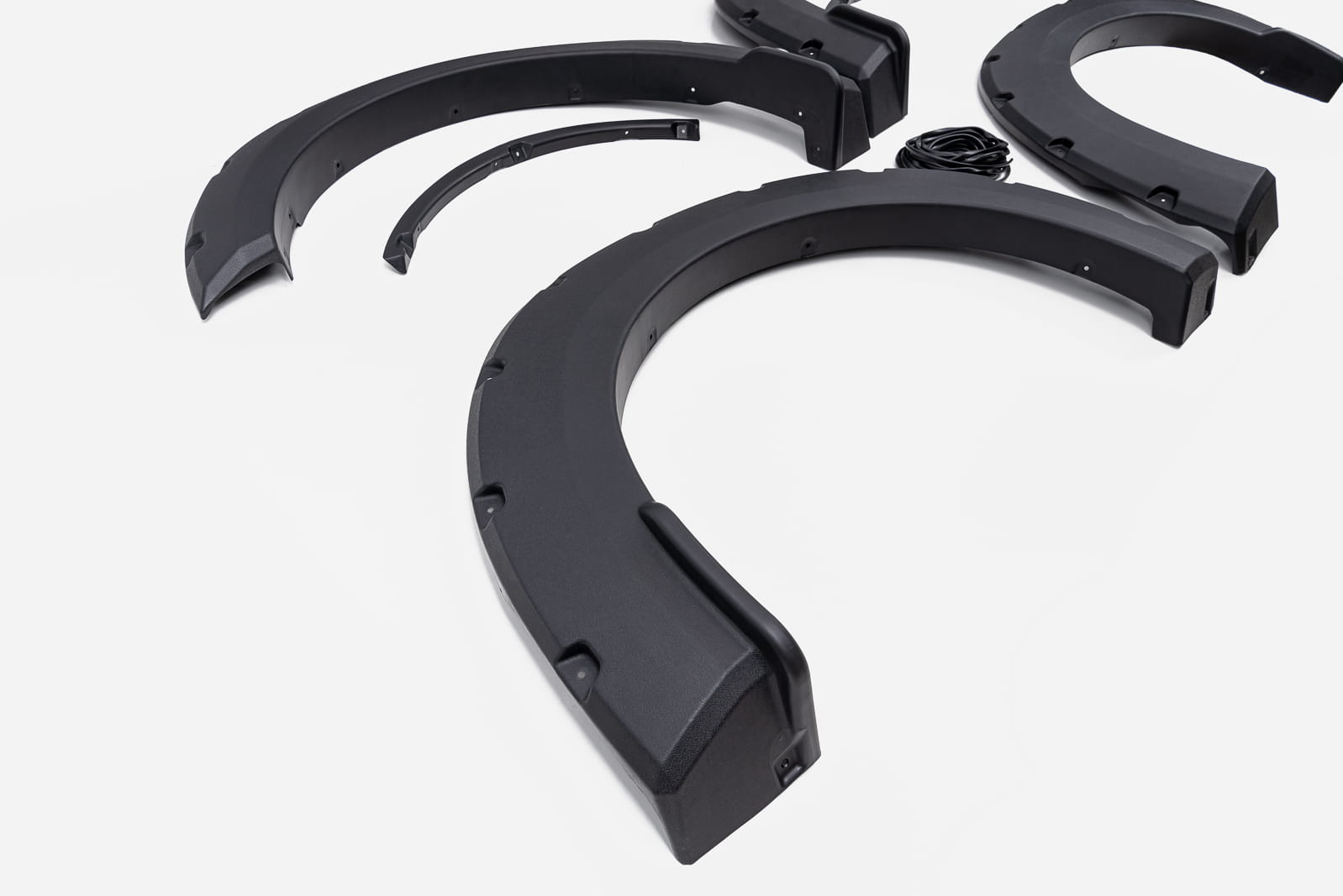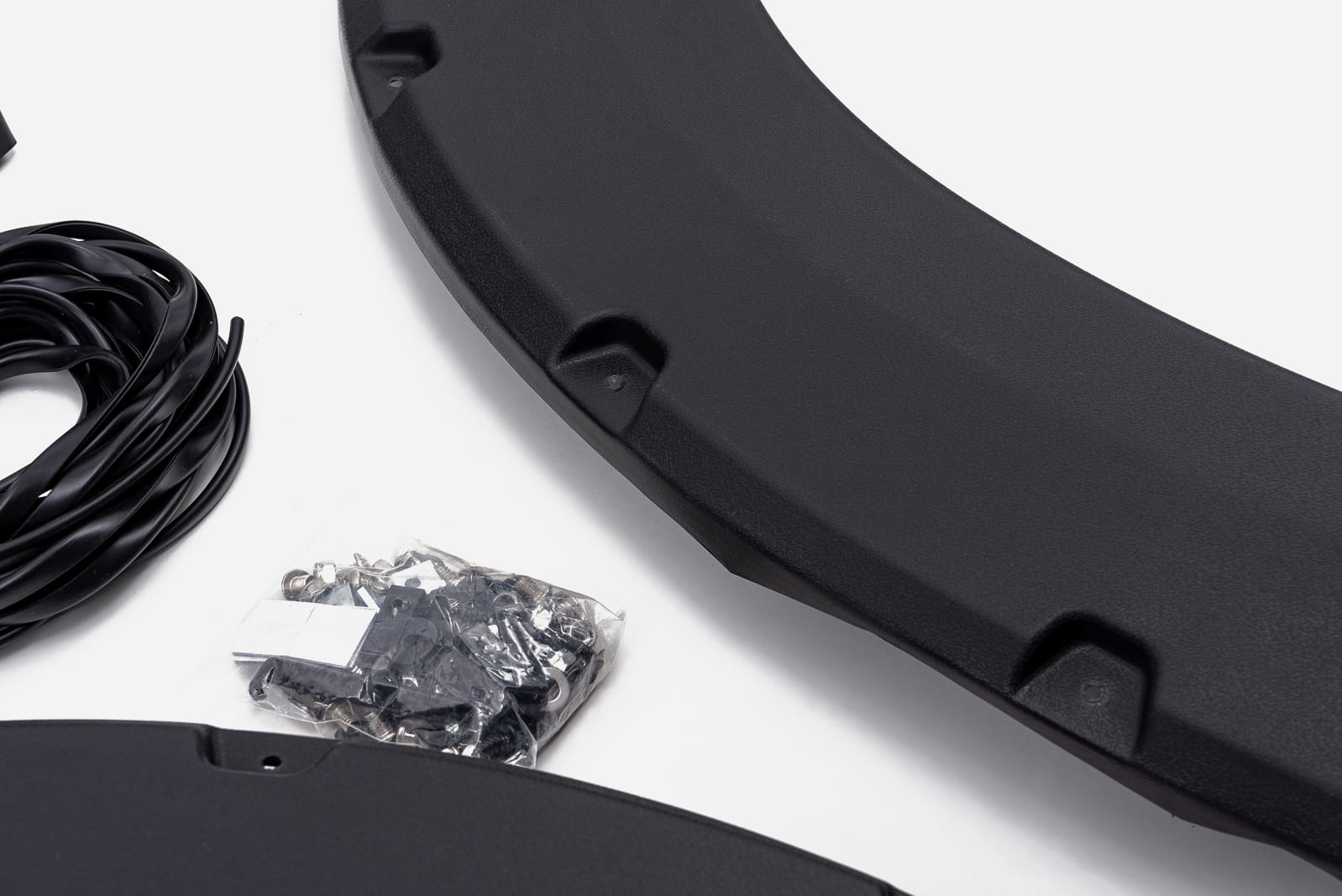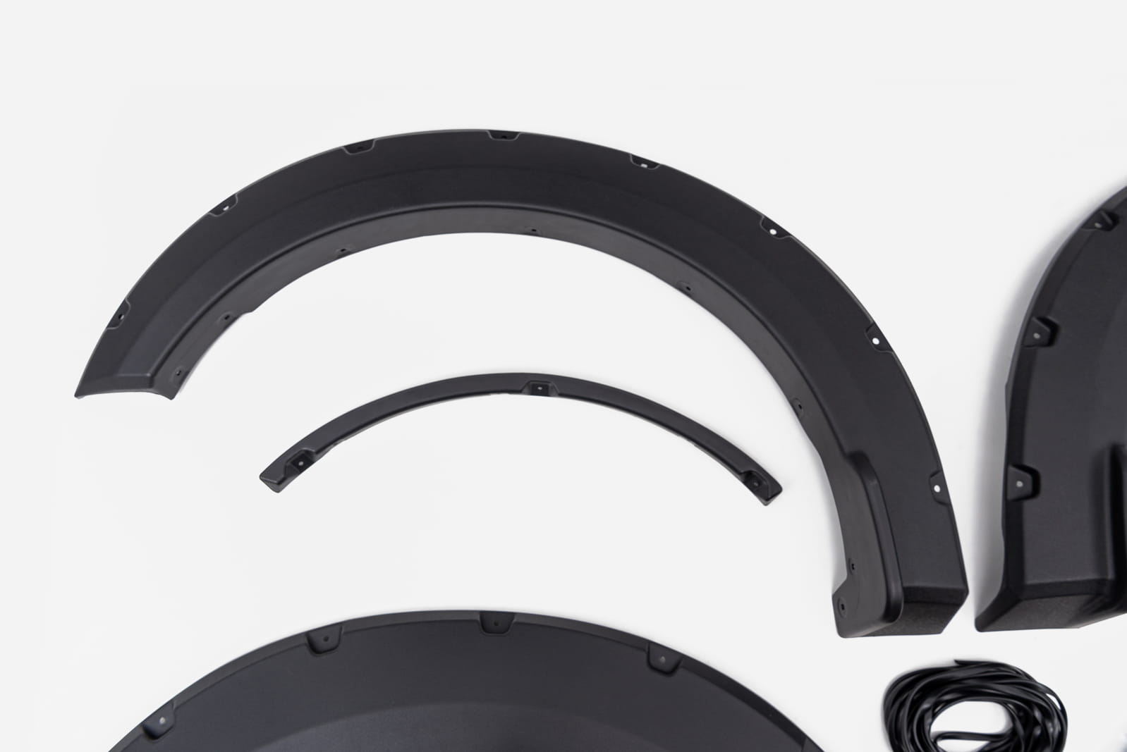 Zagłębione śruby ze stali nierdzewnej i masywny wygląd, podkreślają off-roadowy charakter samochodu. Montowane są bez konieczności wiercenia dodatkowych otworów w błotniku. Poszerzenia zostały zrobione z grubego, odpornego na wypaczenia materiału i malowane na kolor matowy czarny. Nadają się do montażu od razu po wyjęciu z pudełka.