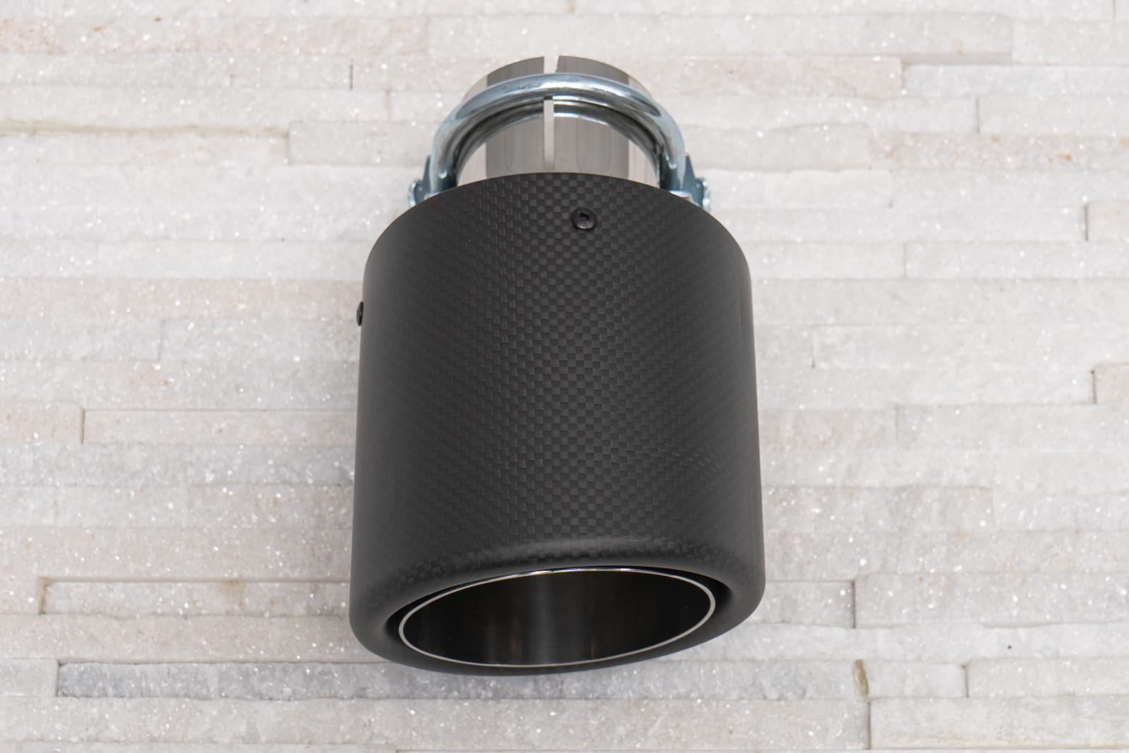 Montaż odbywa się poprzez nałożenie elementu na oryginalną rurę wydechu oraz dokręcenie znajdujących się w zestawie śrub, mocujących końcówkę na stałe. Zalecamy montaż profesjonalny.