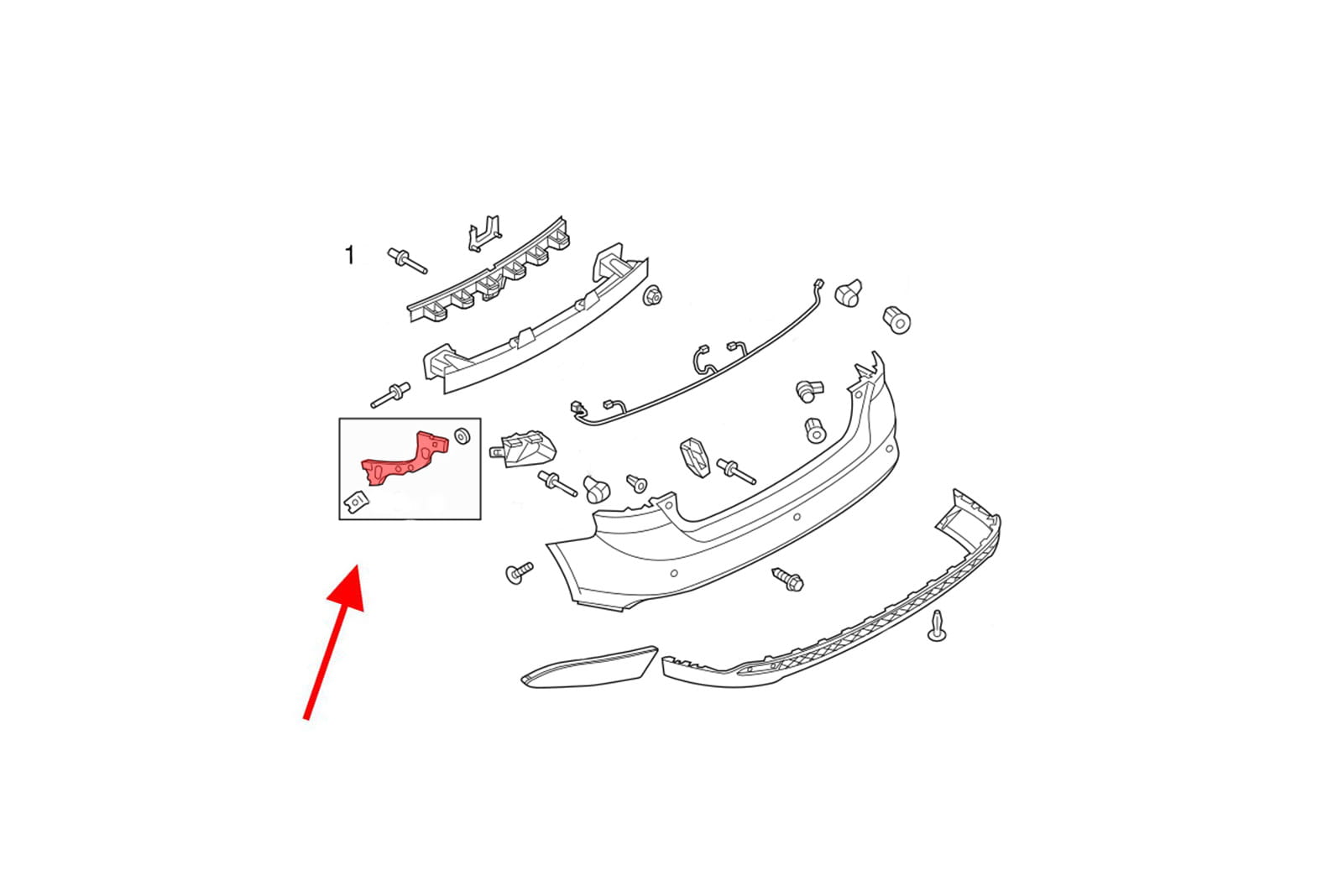 Element mocujący poszycie zderzaka tylnego, ślizg lewy, dla FORD FOCUS MK3 III 2010-2014 (wersja Hatchback przed liftingiem). Nie pasuje do wersji RS oraz ST.