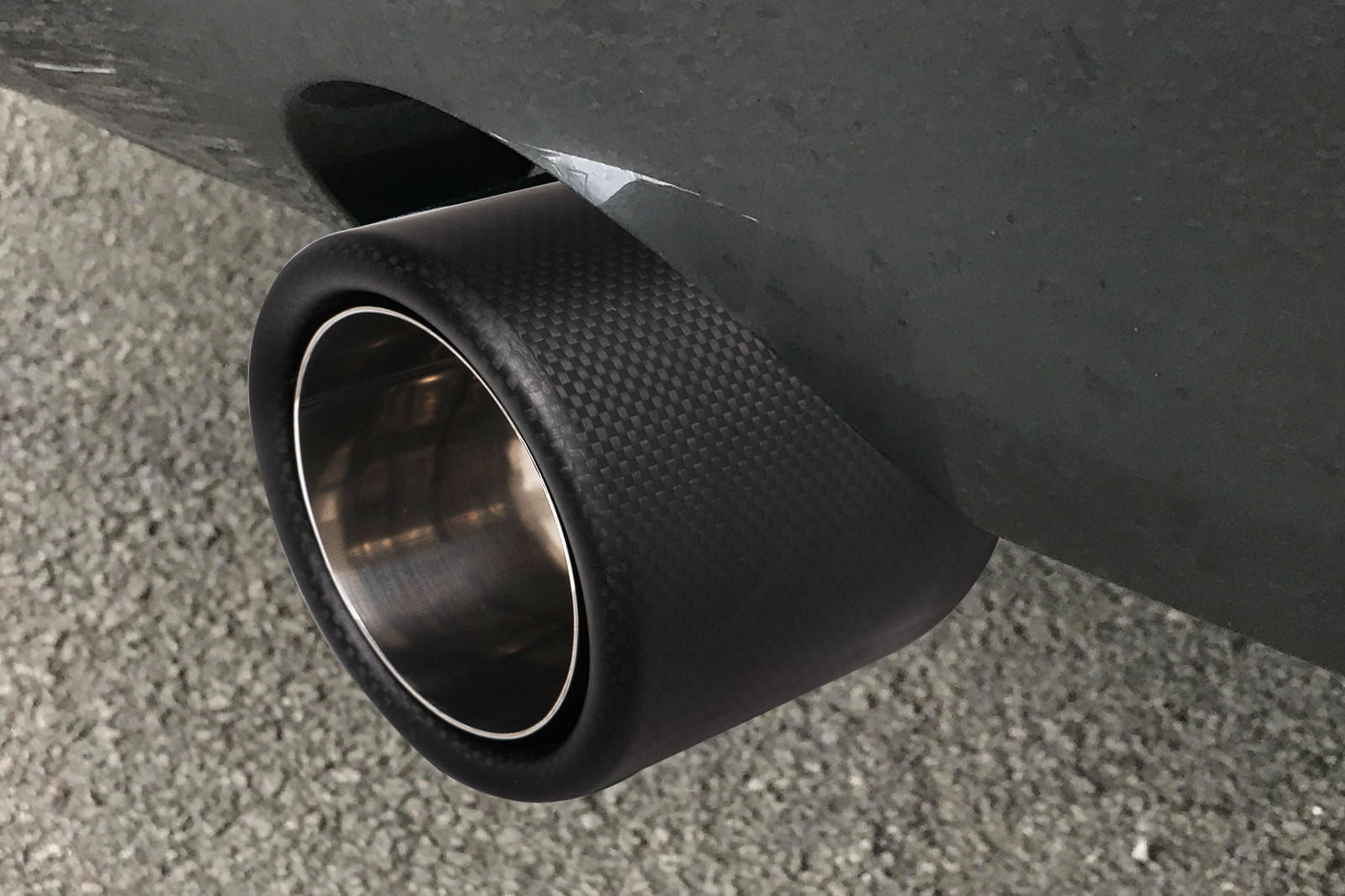 Stalowa końcówka wydechu z ozdobną otoczką, model KARBON dedykowana do modelu FORD FOCUS MK4 (IV) 2018+.