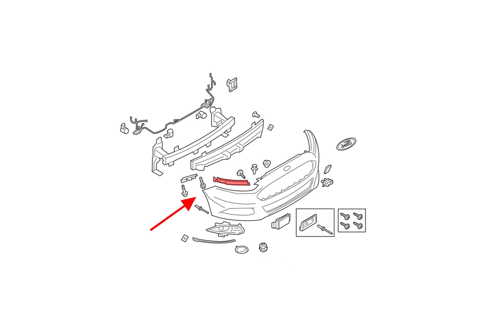 Element mocujący poszycie zderzaka przedniego, ślizg prawy, dla FORD FUSION MK2 II 2012-2016 (wersja przed liftingiem).