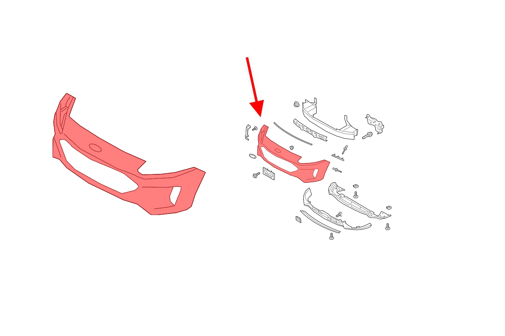 Przedni zderzak z otworem na hak, dla FORD KUGA MK3 III 2019-2024 (wersja przed faceliftingiem). Zderzak posiada zaślepkę haka holowniczego.