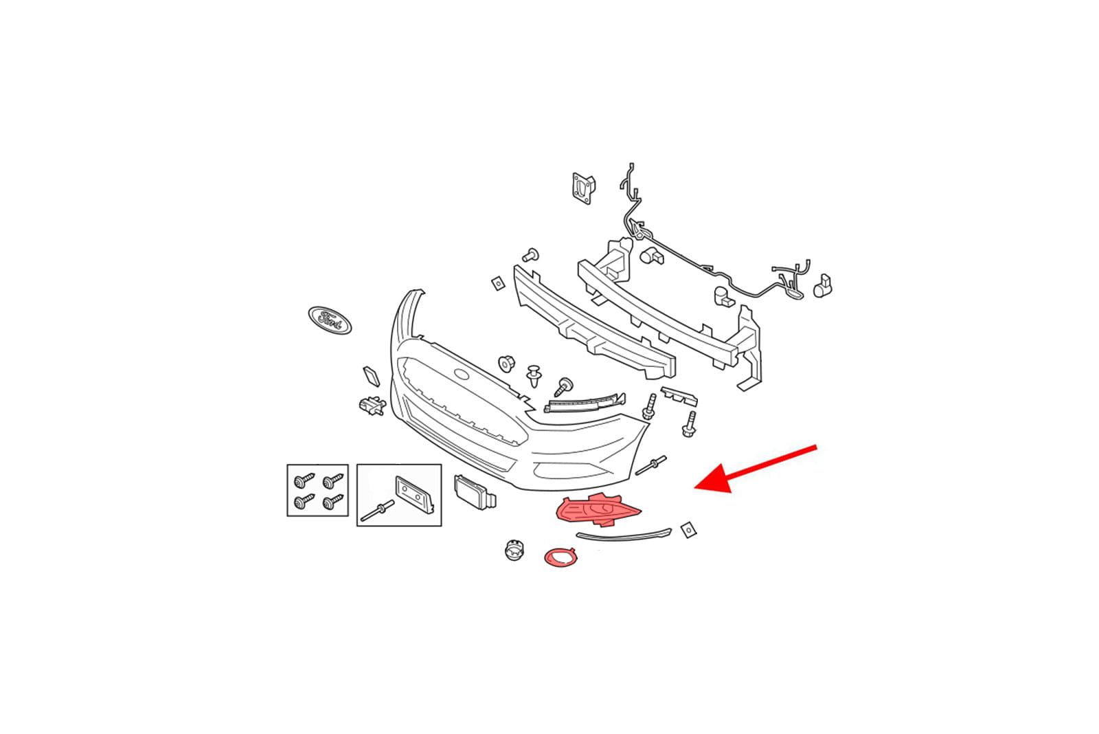 Ramka przedniej lampy przeciwmgielnej, kratka zderzaka lewa, dla FORD MONDEO MK5 V 2014-2019 (wersja przed liftingiem). Nie pasuje do wersji wyposażeniowej Vignale.