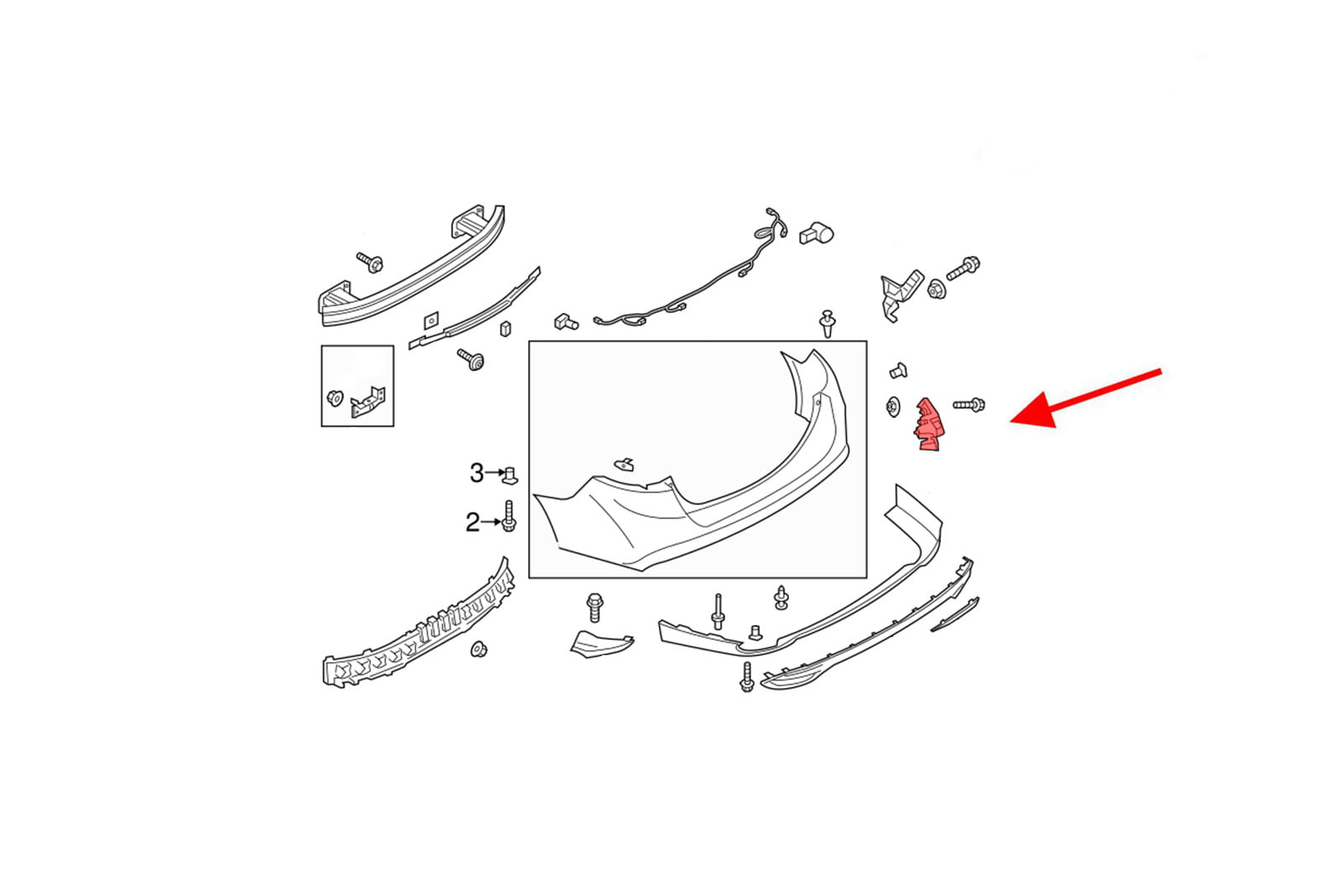 Element mocujący poszycie zderzaka tylnego, ślizg lewy pod lampę, dla FORD MONDEO MK5 V 2014-2022.