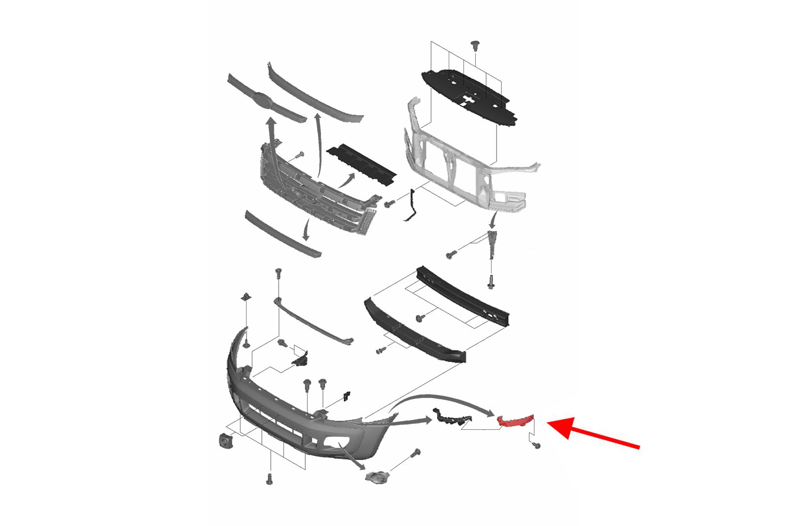 Element mocujący poszycie zderzaka przedniego, ślizg lewy, dla FORD RANGER T6 2011-2015 (wersja przed liftingiem).