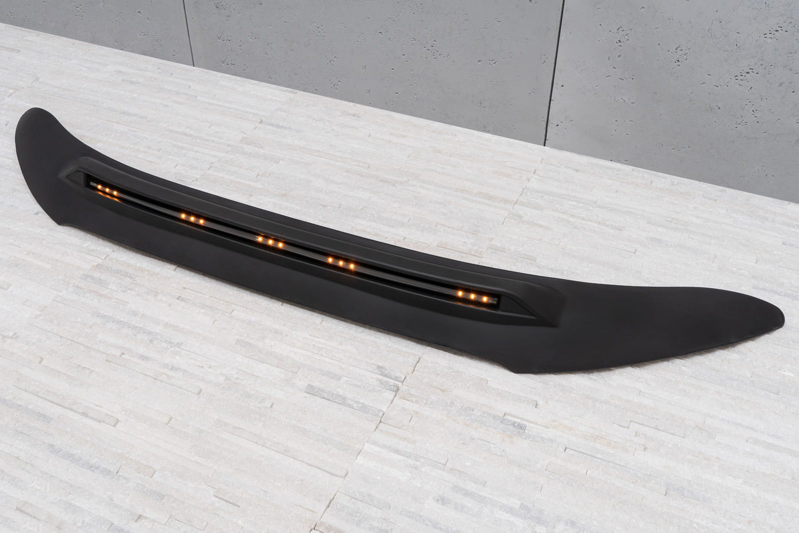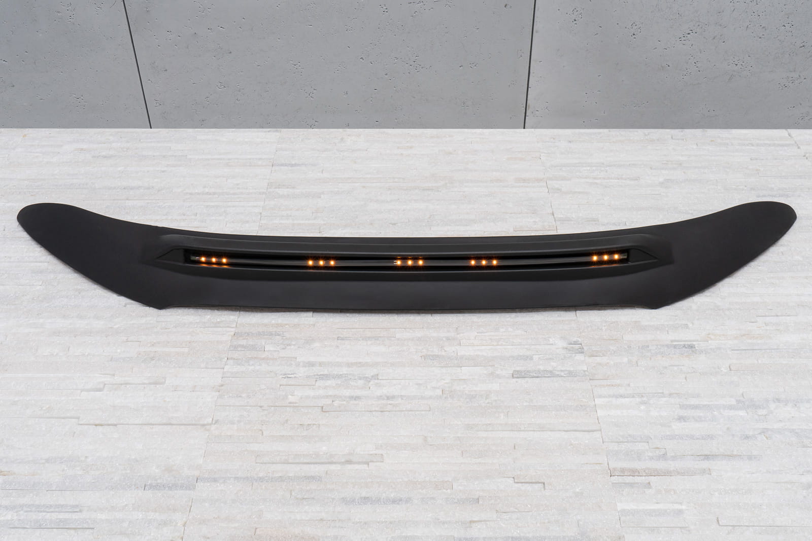 Owiewka maski to użyteczny dodatek, który zapewnia ochronę karoserii podczas jazdy. Opływowy kształt owiewki maski zmienia kierunek strugi powietrza i wszelkich zanieczyszczeń przemieszczających się wraz z nią. Chroni pojazd przed brudem oraz owadami. Owiewka wyposażona jest w świecącą listę LED, która nadaje walory estetyczne pojazdowi.