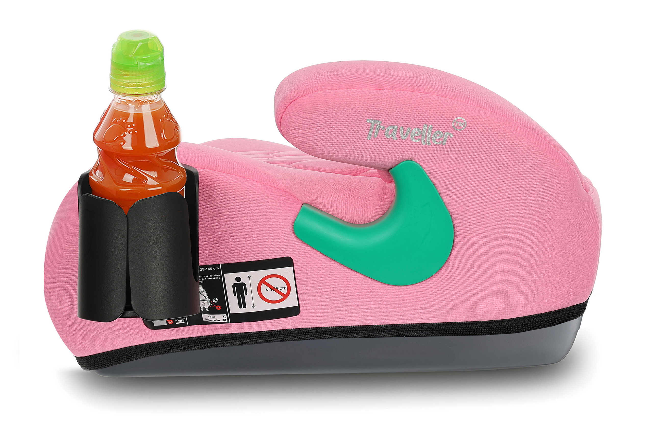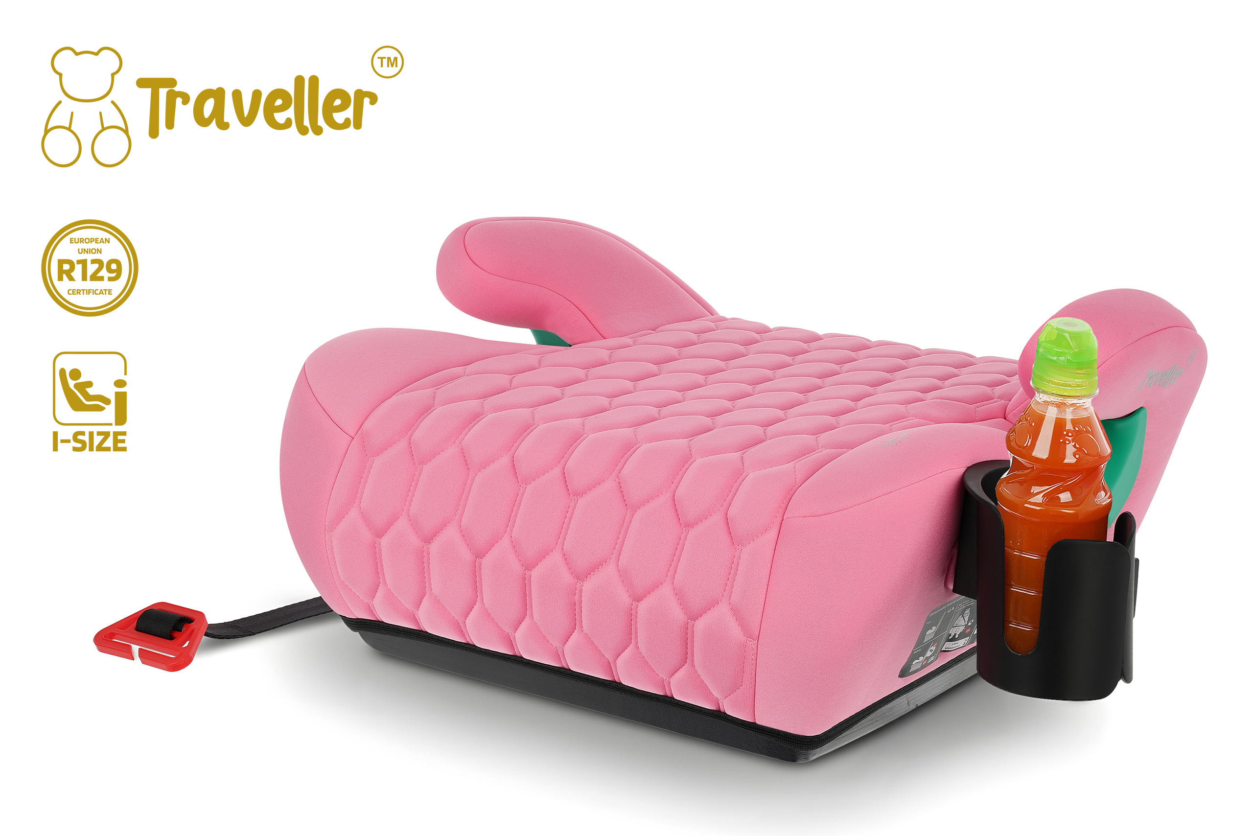 Certyfikowany fotelik samochodowy marki TRAVELLER, przeznaczony jest dla dzieci o wzroście 125 cm-150 cm. Fotelik spełnia wymagania najnowszej homologacji ECE R129/03.