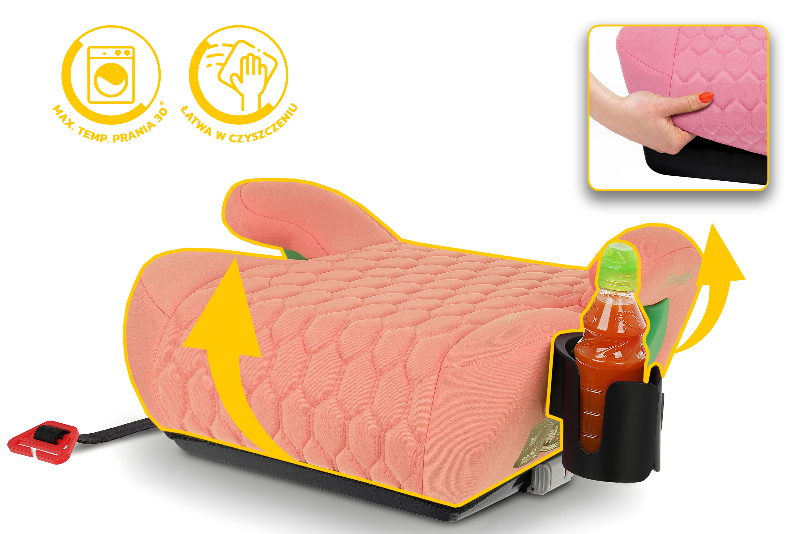 Fotelik wykonano z wysokiej jakości materiałów. Tapicerka jest całkowicie demontowalna, a jej zdjęcie nie trwa dłużej niż minutę. Utrzymanie fotelika w czystości nie stanowi wyzwania. Zdjętą tapicerkę można bezpiecznie prać w pralce, bez użycia wybielaczy w temperaturze do 30°.