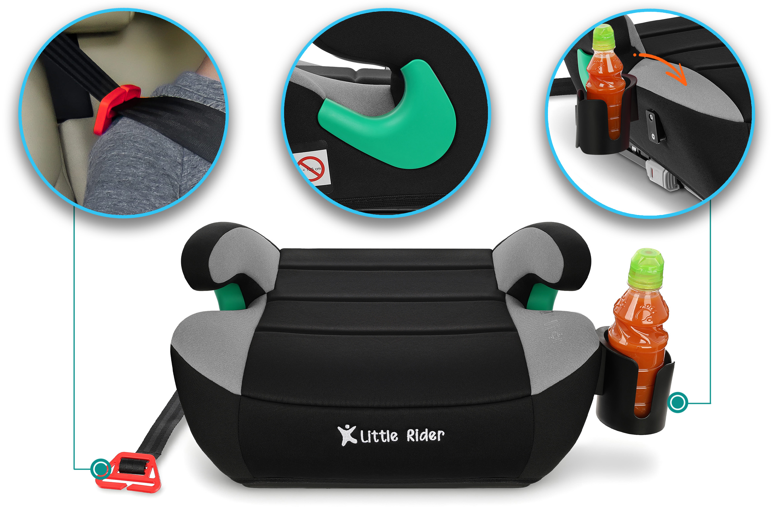 Certyfikowany fotelik samochodowy marki LITTLE RIDER, przeznaczony jest dla dzieci o wzroście 125 cm-150 cm. Fotelik wyposażony jest w mocowanie ISOFIX. Siedzisko spełnia wymagania najnowszej homologacji ECE R129/03.