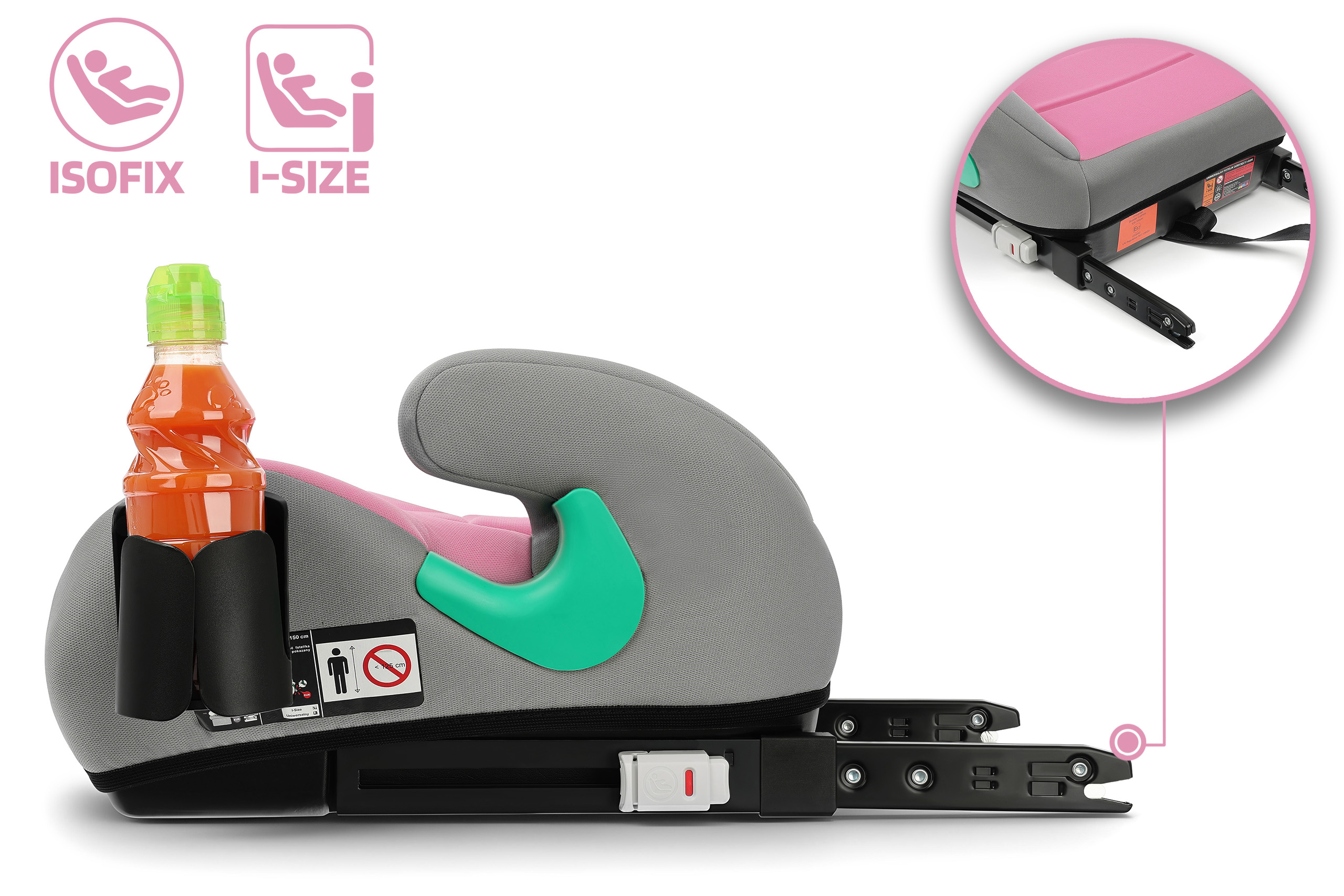 FOTELIK SAMOCHODOWY PODKŁADKA SIEDZISKO Z ISOFIX SZARO-RÓŻOWY R129 125-150 CM