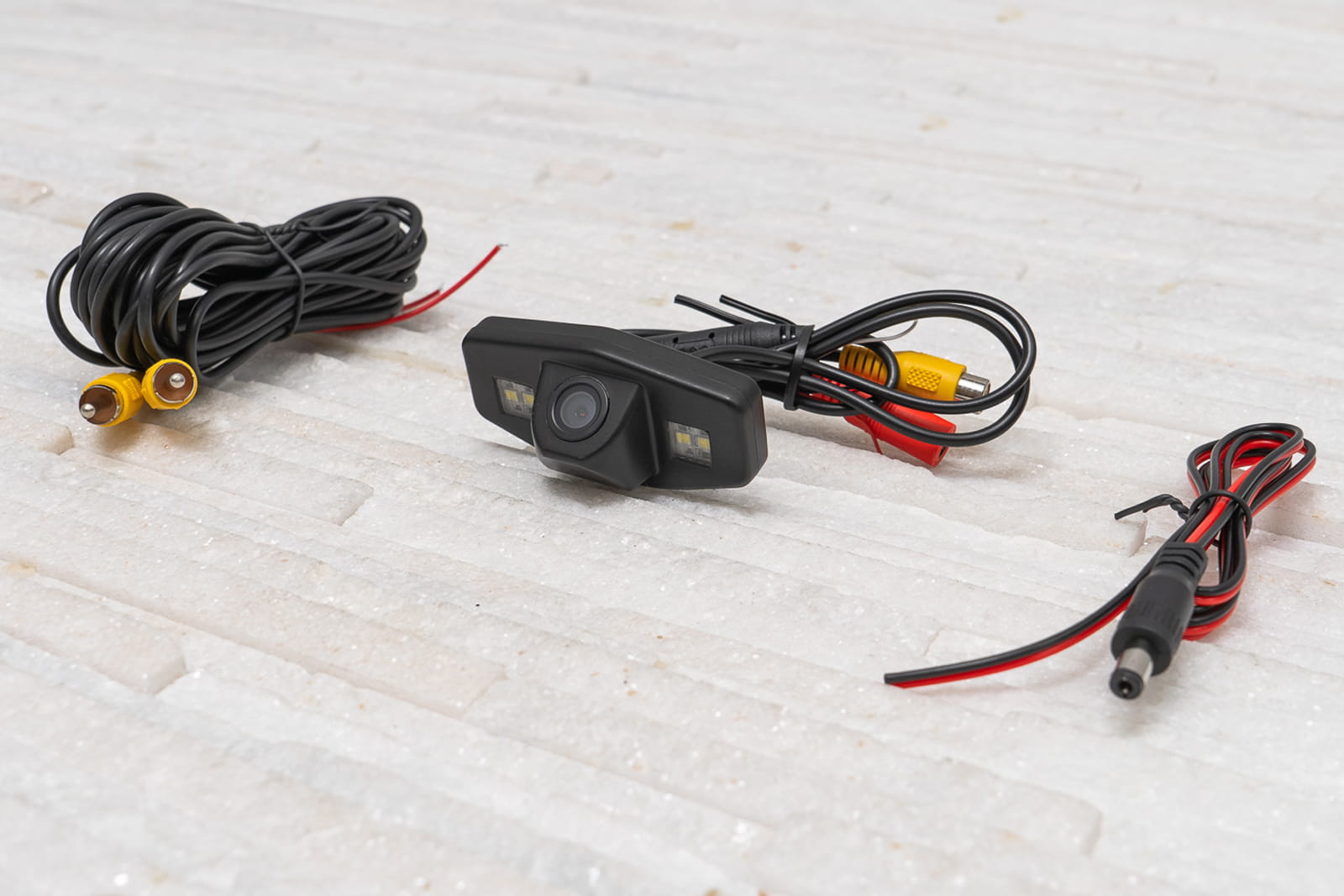 Kamera montowana jest w miejscu lampki oświetlenia tablicy rejestracyjnej obok klamki otwarcia klapy bagażnika. Wyposażona jest w lampkę tablicy rejestracyjnej. Kamera posiada szeroki kąt widzenia 120° oraz rozdzielczość: 733x493px. Dodatkowo wyposażona została ona w tryb Night Vision, który zapewnia doskonałą widoczność w nocy. Urządzenie jest kompatybilne z każdym ekranem lub monitorem dzięki kablowi VIDEO RCA. Kamera odporna na warunki atmosferyczne (wodoodporność IP68), zasilanie 12 V. Kabel zasilania kamery należy podłączyć do kabla zasilania lampy cofania, dzięki temu kamera uruchomi się, gdy włączony jest wsteczny bieg (można również podłączyć niezależne zasilanie z umieszczonym włącznikiem w desce rozdzielczej i korzystać z kamery w trakcie jazdy).
