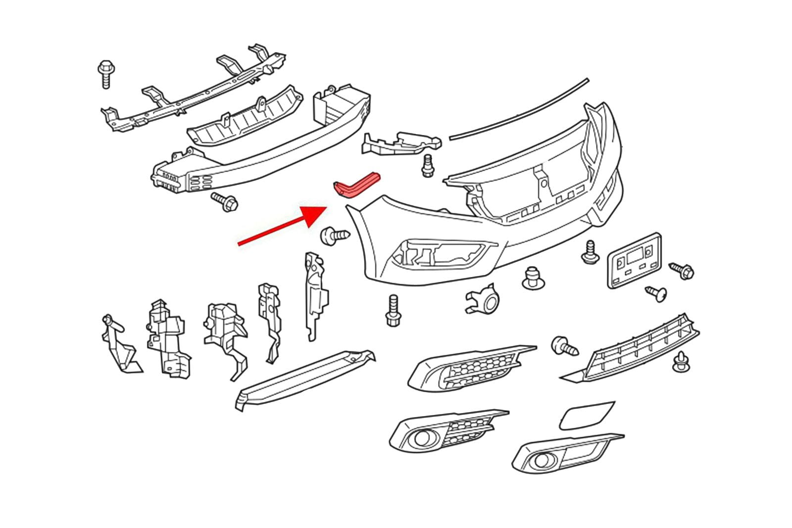Element mocujący przedniego zderzaka, ślizg przedniego zderzaka prawy, dla HONDA CIVIC X 2016-2019 (wersja przed faceliftingiem).