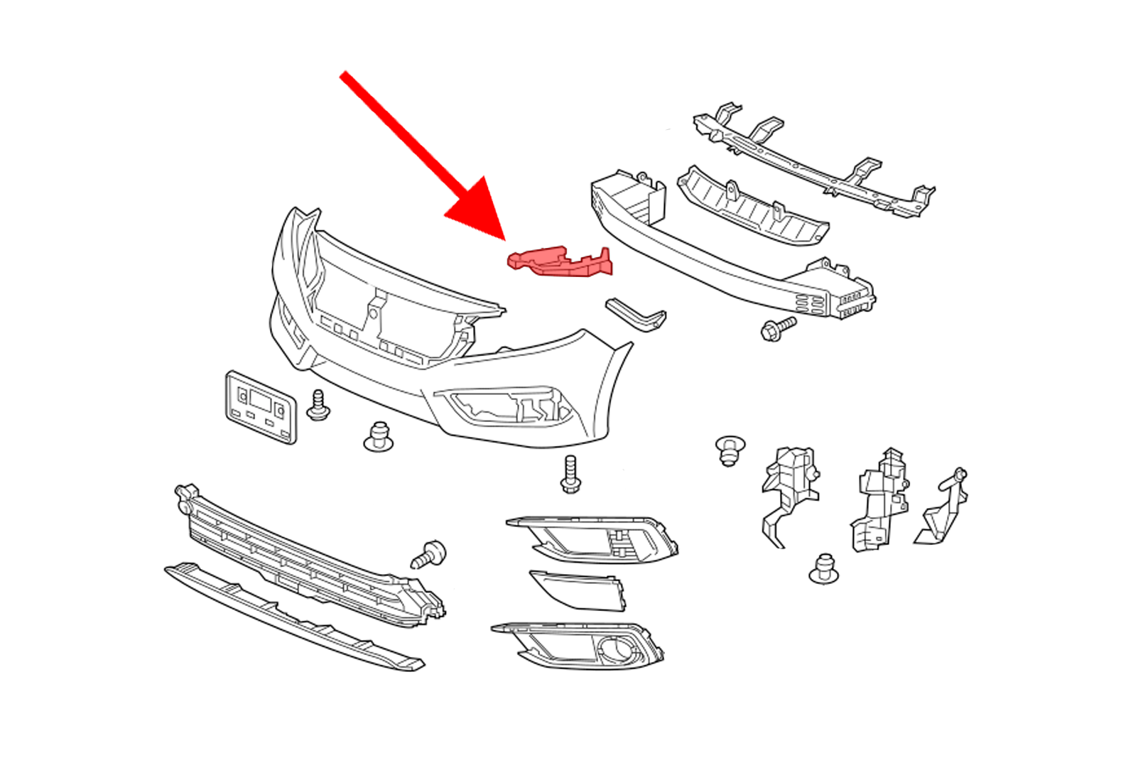 Wspornik, mocowanie reflektora lewe, dla HONDA CIVIC X 2016-2019 (wersja przed faceliftingiem).