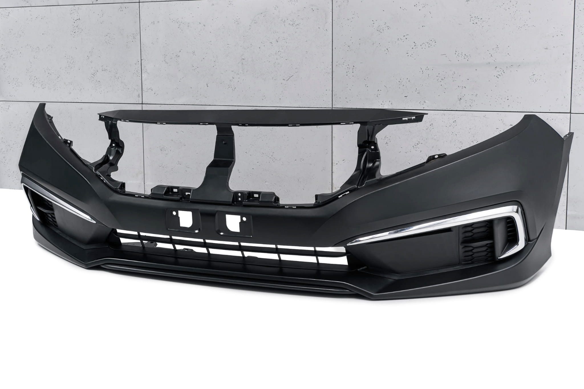 Kompletny zderzak przedni, dedykowany dla HONDA CIVIC X 2019 -2021 (wersja po faceliftingu). Wersja bez otworów pod czujniki parkowania PDC i otworów pod spryskiwacze.