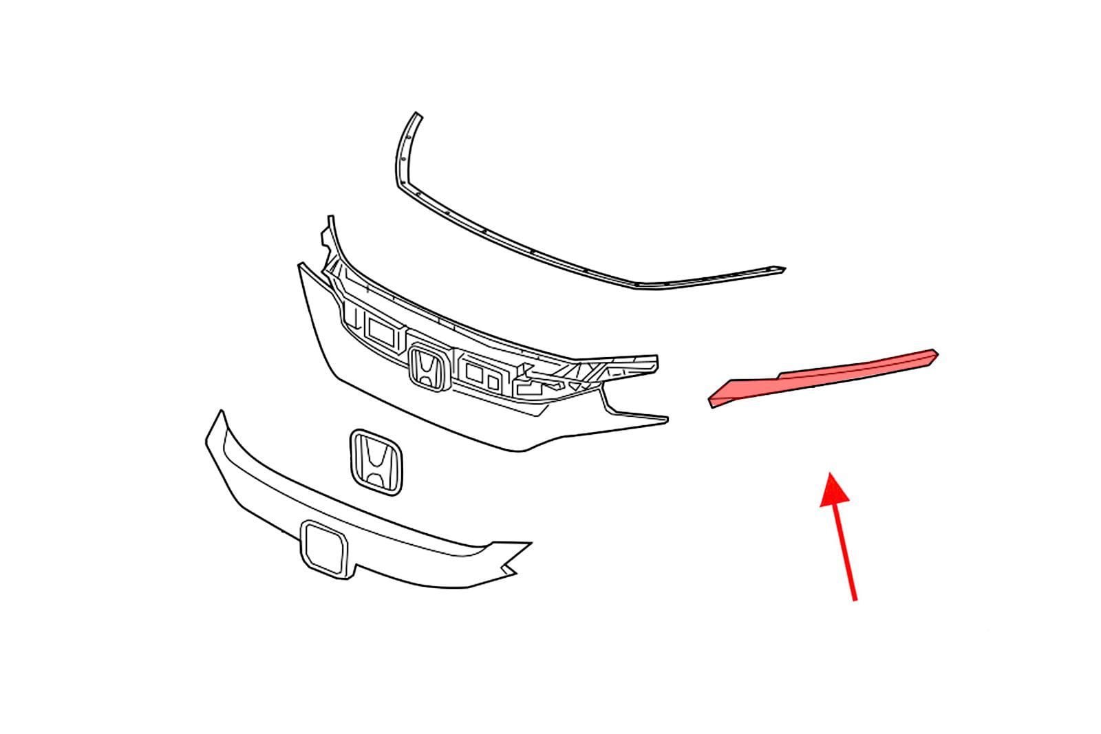Listwa grilla, lewa, dla HONDA CIVIC X 2019-2021 (wersja po faceliftingu). Pasuje zarówno do wersji SEDAN jak i HATCHBACK.