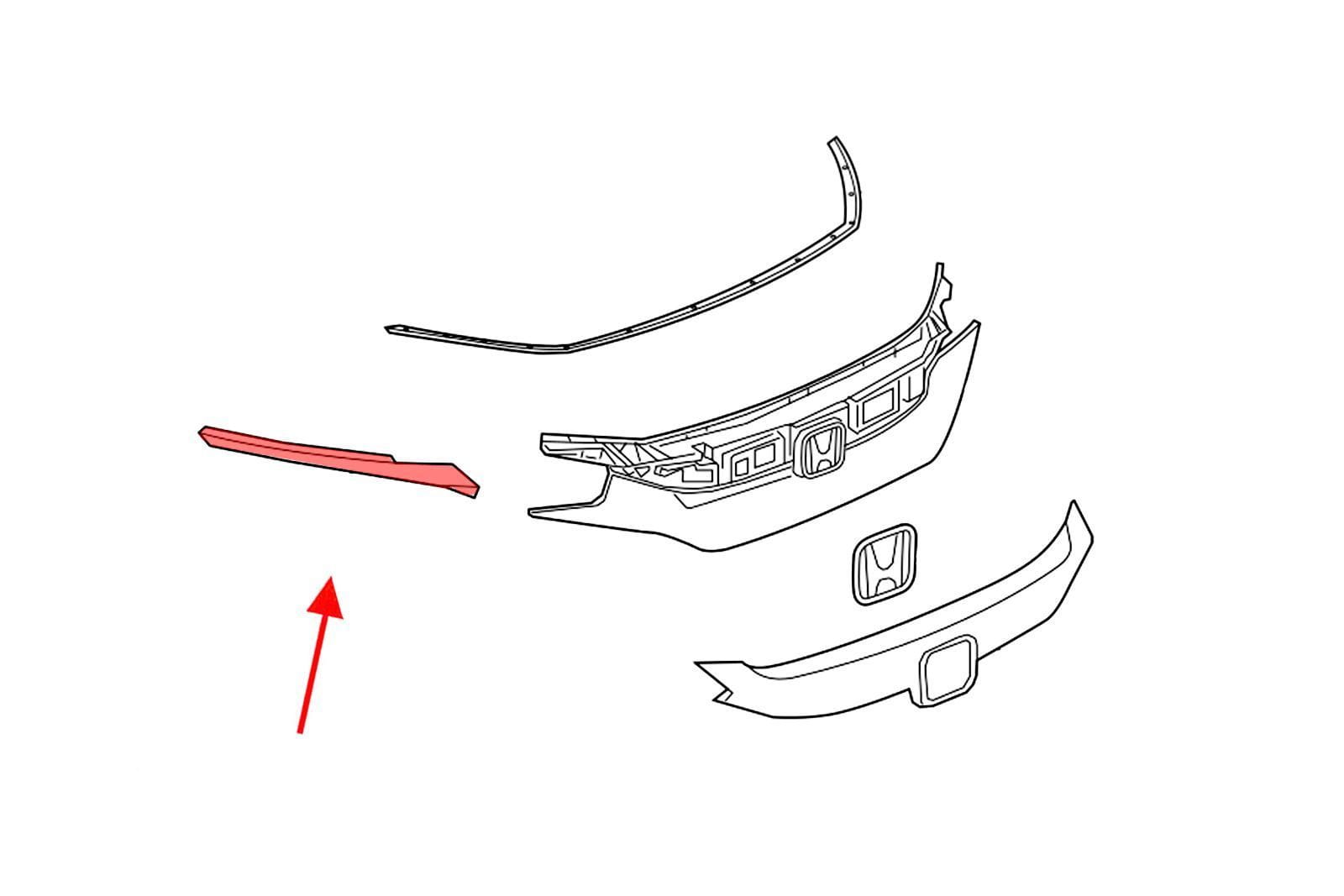 Listwa grilla, prawa, czarna, dla HONDA CIVIC X 2019-2021 (wersja po faceliftingu). Pasuje zarówno do wersji SEDAN jak i HATCHBACK.