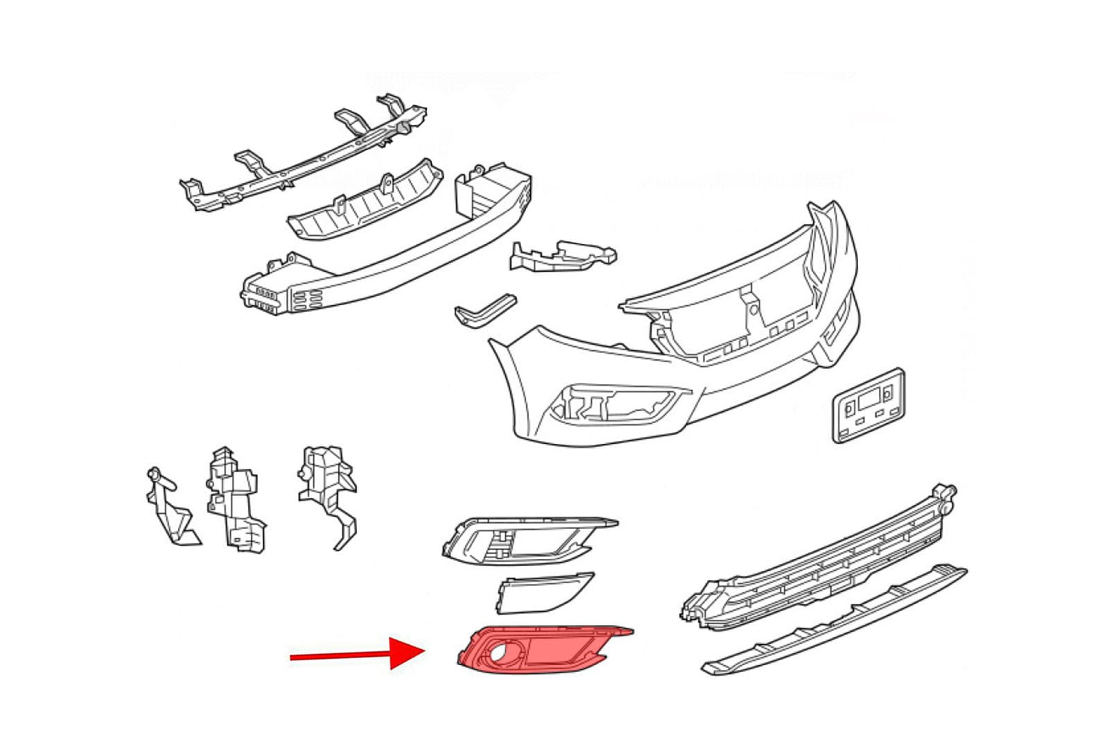Kratka, zaślepka z otworem pod lampę przeciwmgielną, przednia, prawa, dla HONDA CIVIC X 2019-2021 (wersja SEDAN po faceliftingu).