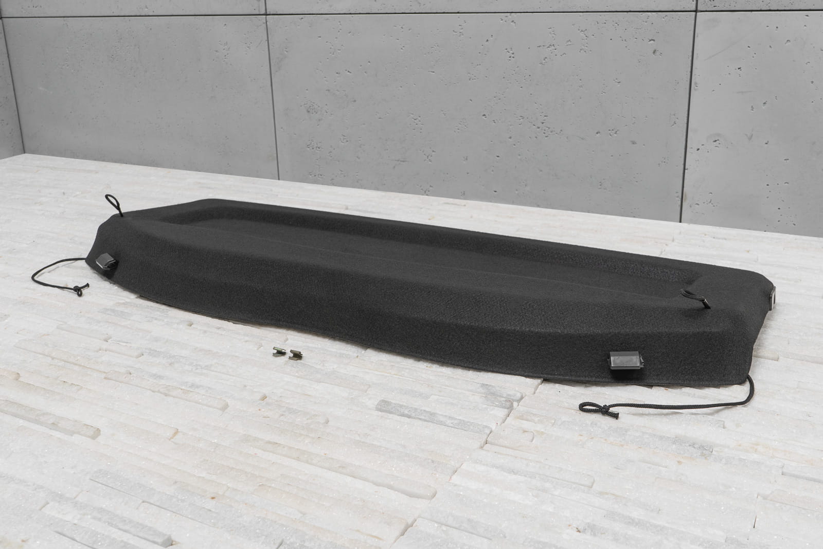 Akcesoryjna półka pozwala na zakrycie wnętrza bagażnika, tym samym zmniejszając ryzyko kradzieży przewożonych przedmiotów. Półka obita została wysokiej jakości materiałem o wysokiej odporności na uszkodzenia mechaniczne, działanie wysokich i niskich temperatur, a także na odbarwianie się od słońca. Produkt fabrycznie nowy, oryginalnie zapakowany.