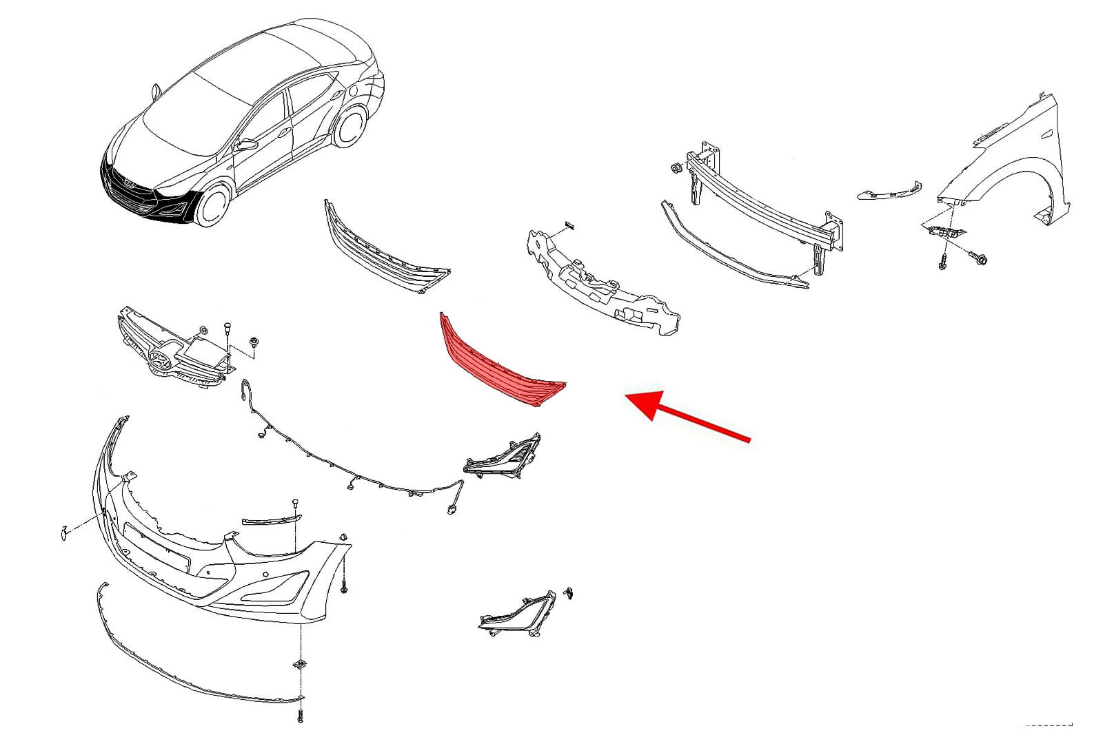 Kratka zderzaka środkowa, atrapa w zderzak, dla HYUNDAI ELANTRA V (MD) 2010-2013 (wersja przed faceliftingiem).