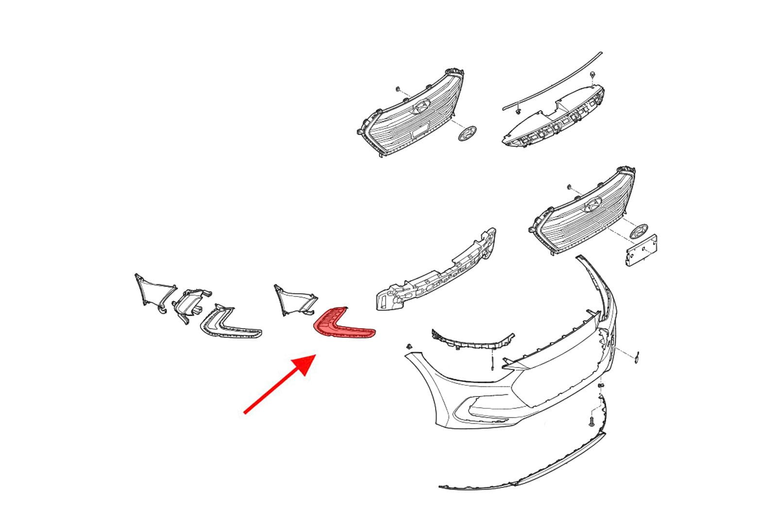 Kratka zderzaka, zaślepka przedniej lampy przeciwmgielnej, prawa, dla HYUNDAI ELANTRA VI (AD) 2015-2018 (wersja przed faceliftingiem).