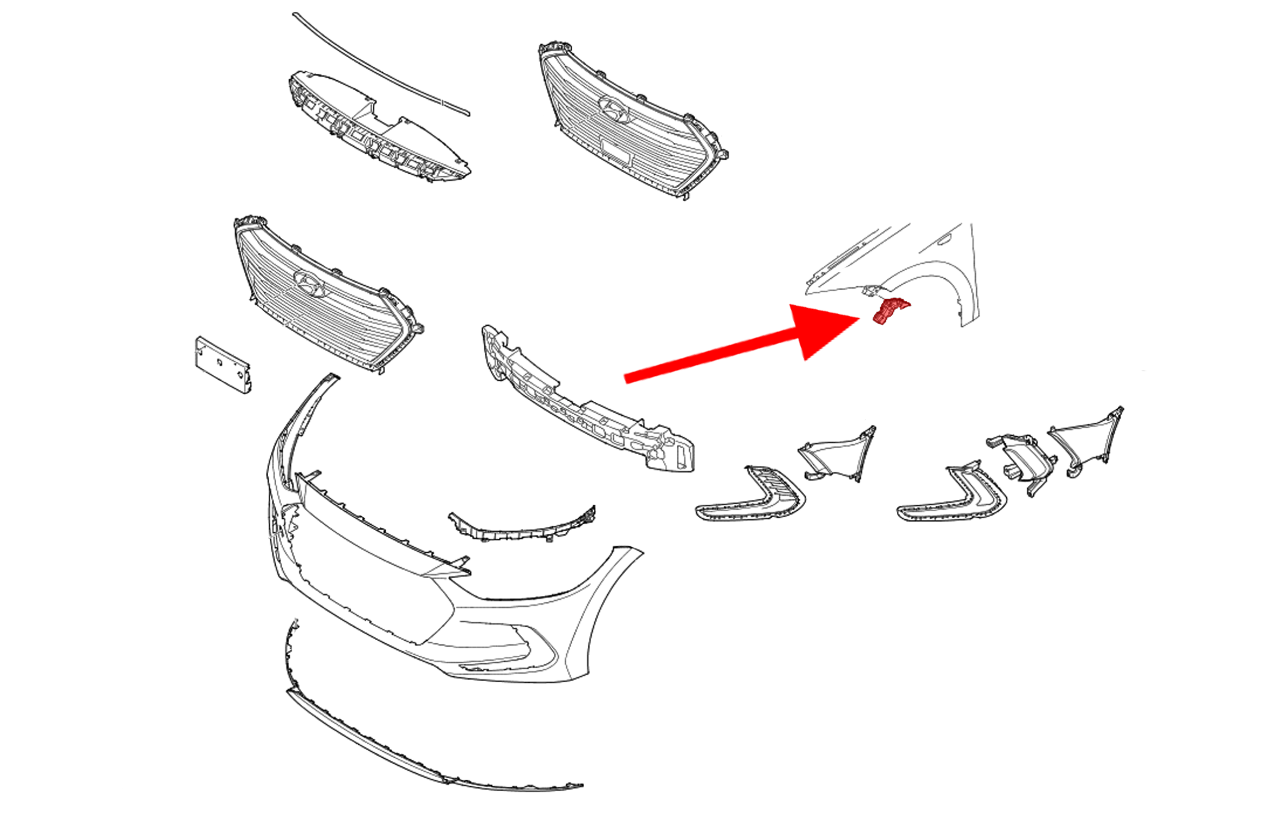 Element mocujący poszycie zderzaka przedniego, ślizg lewy, dla HYUNDAI ELANTRA VI (AD) 2015-2018 (wersja przed faceliftingiem).