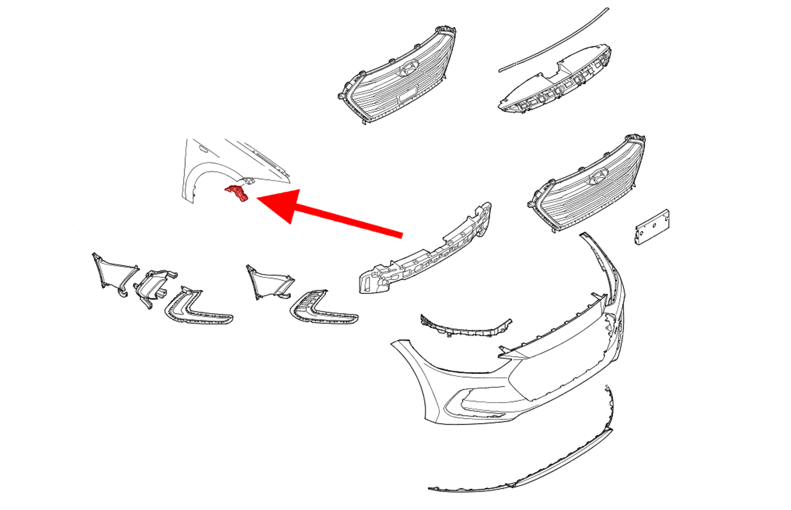 Element mocujący poszycie zderzaka przedniego, ślizg prawy, dla HYUNDAI ELANTRA VI (AD) 2015-2018 (wersja przed faceliftingiem).