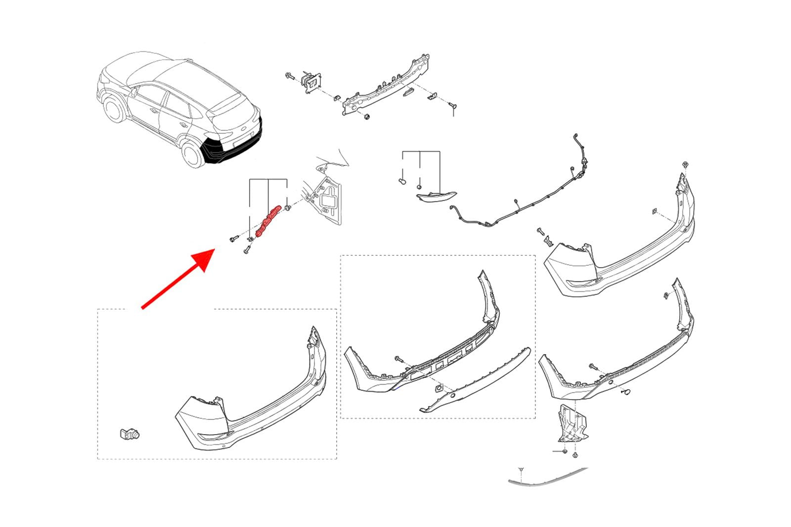 Element mocujący poszycie zderzaka tylnego, ślizg lewy, dla HYUNDAI TUCSON III (TL) 2015-2020.