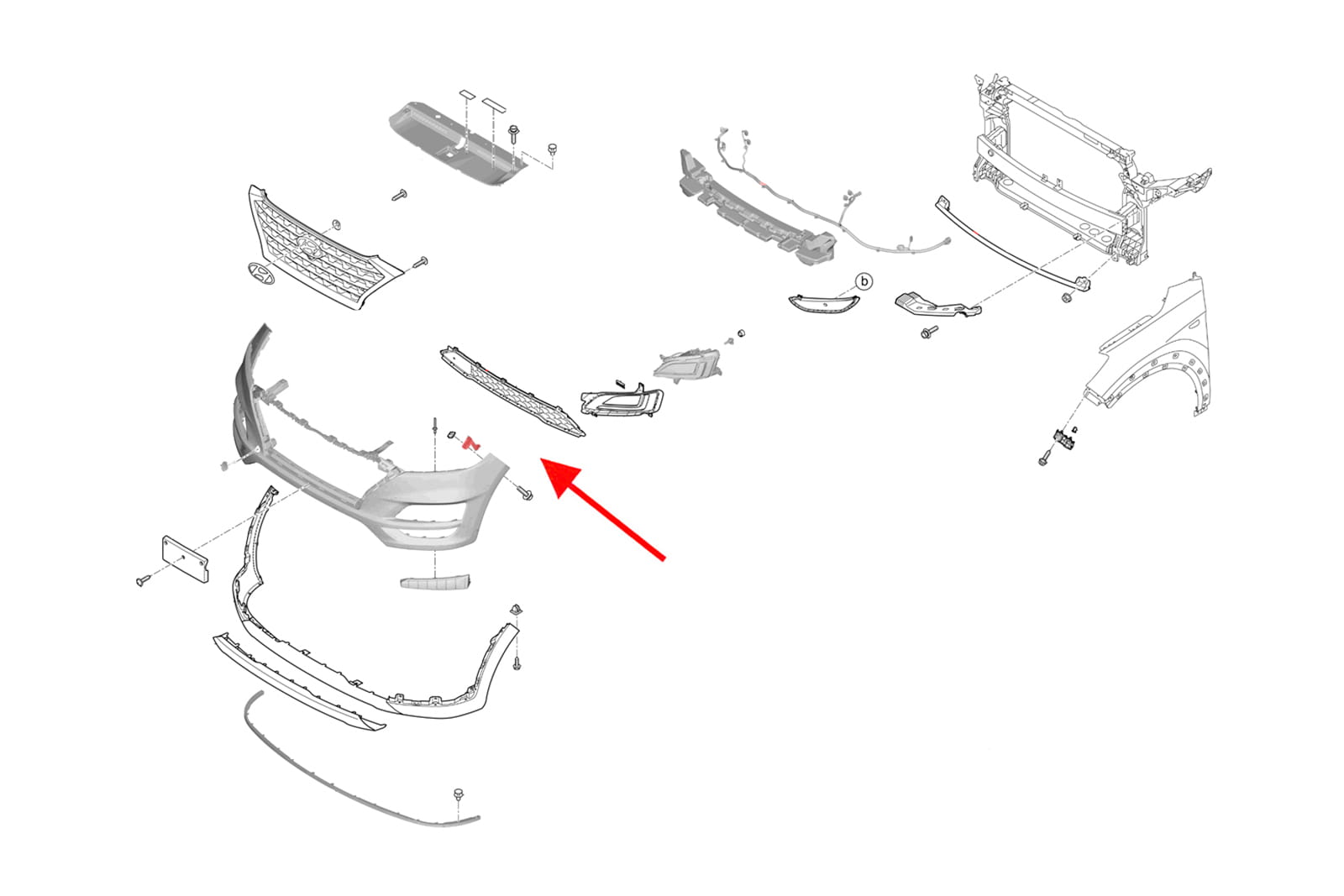 Element mocujący poszycie zderzaka przedniego, ślizg lewy, dla HYUNDAI TUCSON III (TL) 2015-2020.