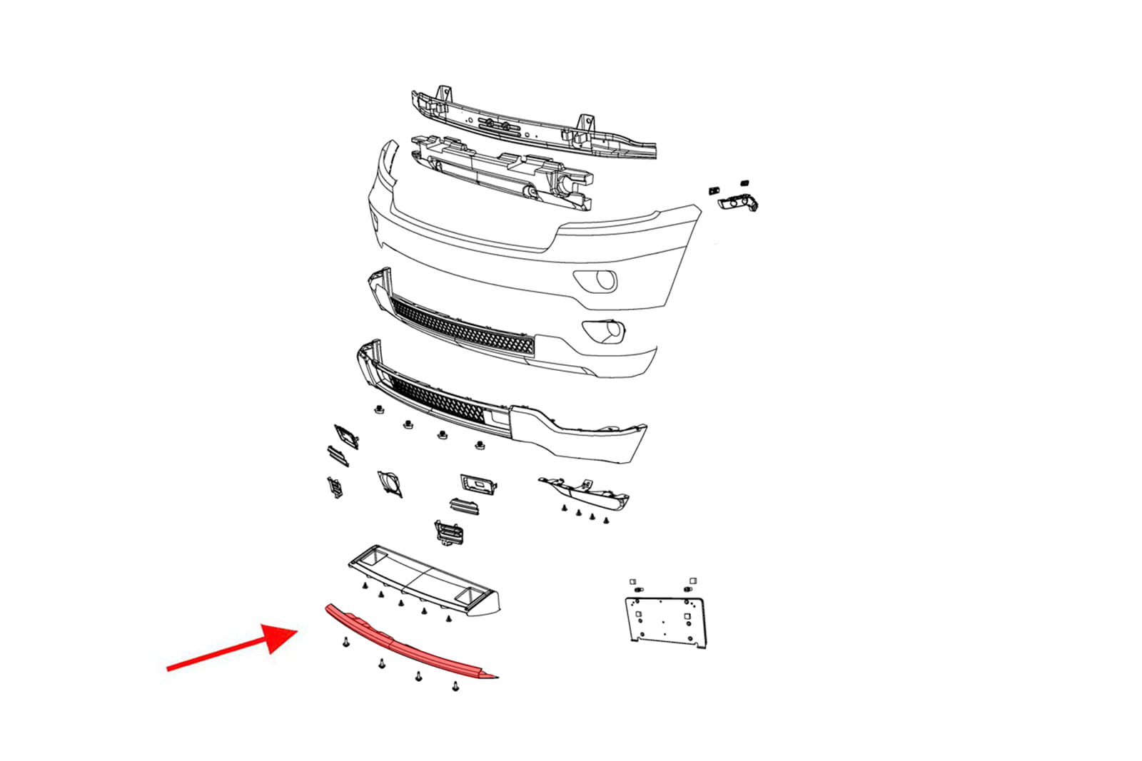Chromowana listwa / dokładka przedniego zderzaka, dla JEEP GRAND CHEROKEE IV (WK2) 2010-2014 (wersja przed faceliftingiem). Nie pasuje do wersji SRT i ALTITUDE.