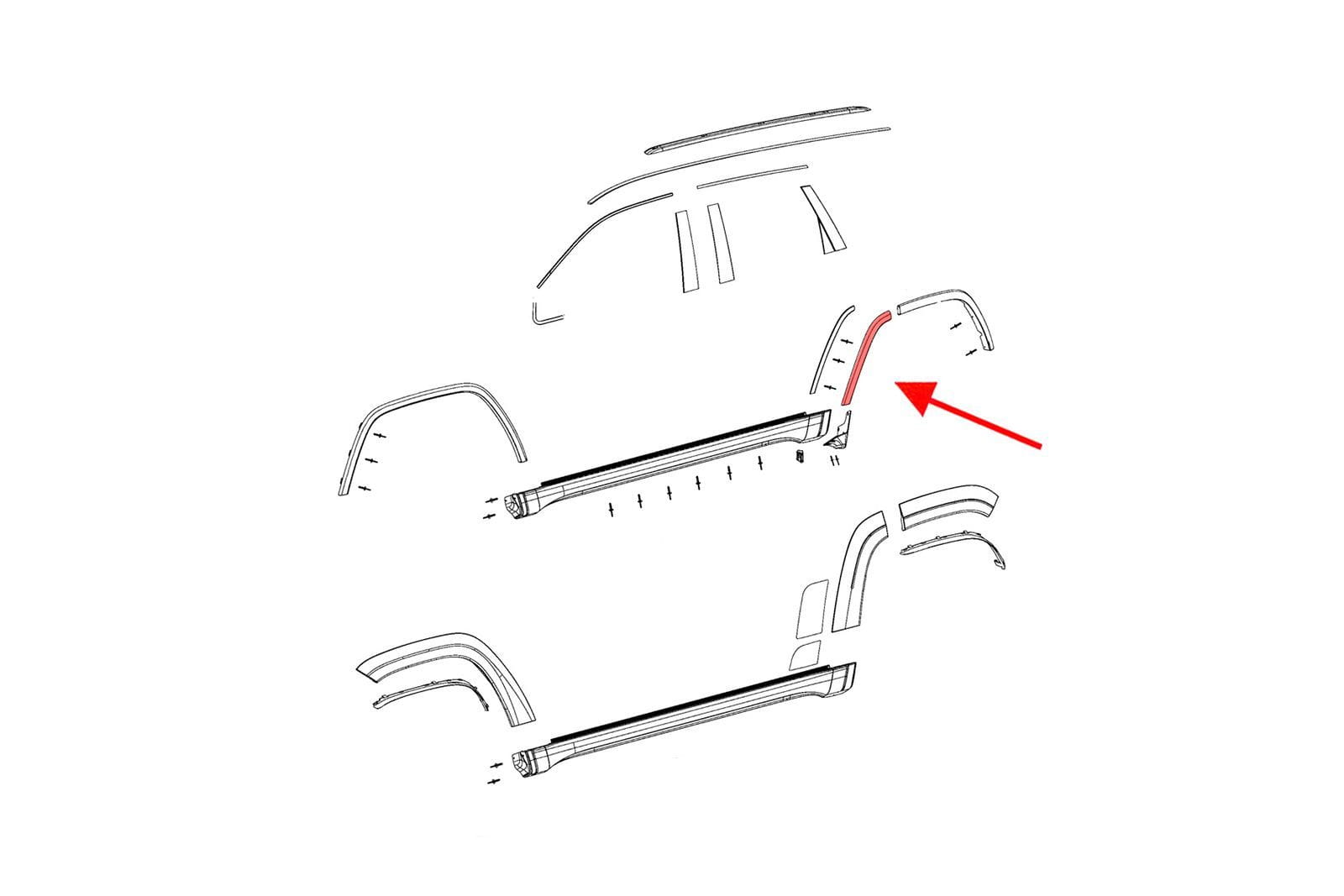 Listwa tylnego błotnika, lewa (część przednia), dla JEEP GRAND CHEROKEE IV (WK2) 2010-2021. Nie pasuje do wersji SRT.
