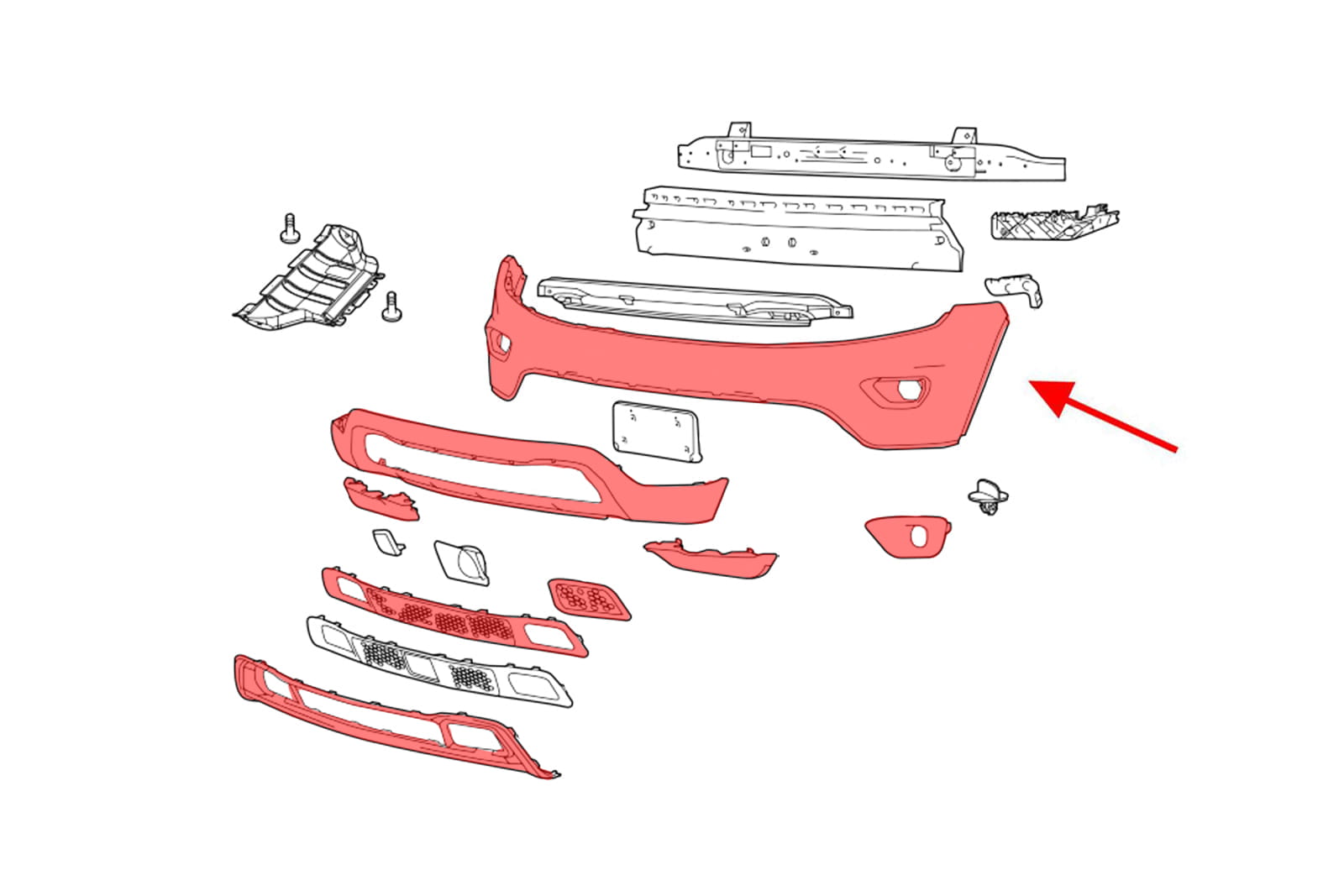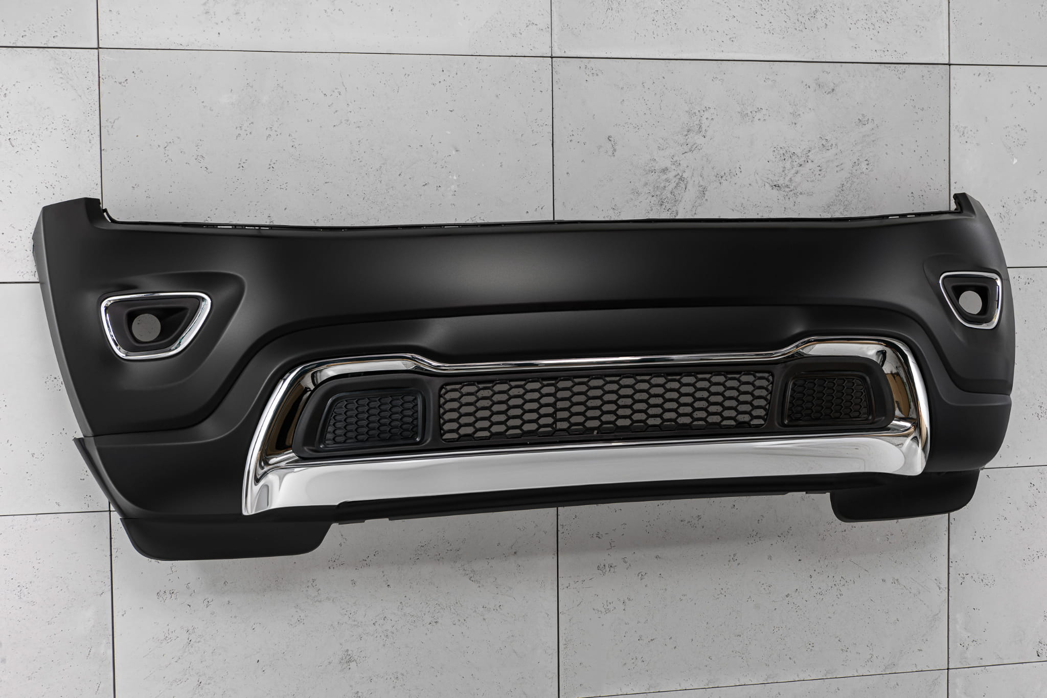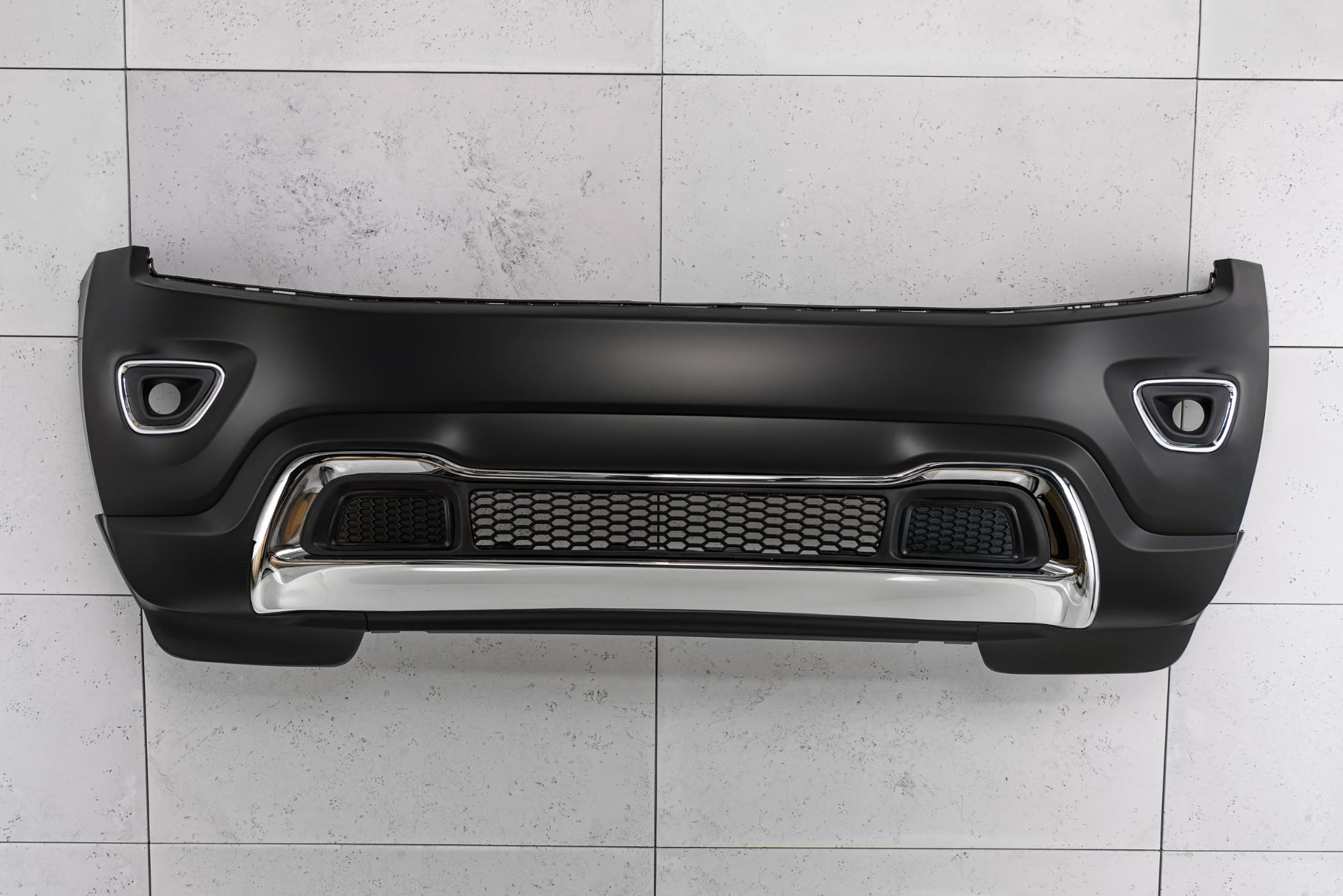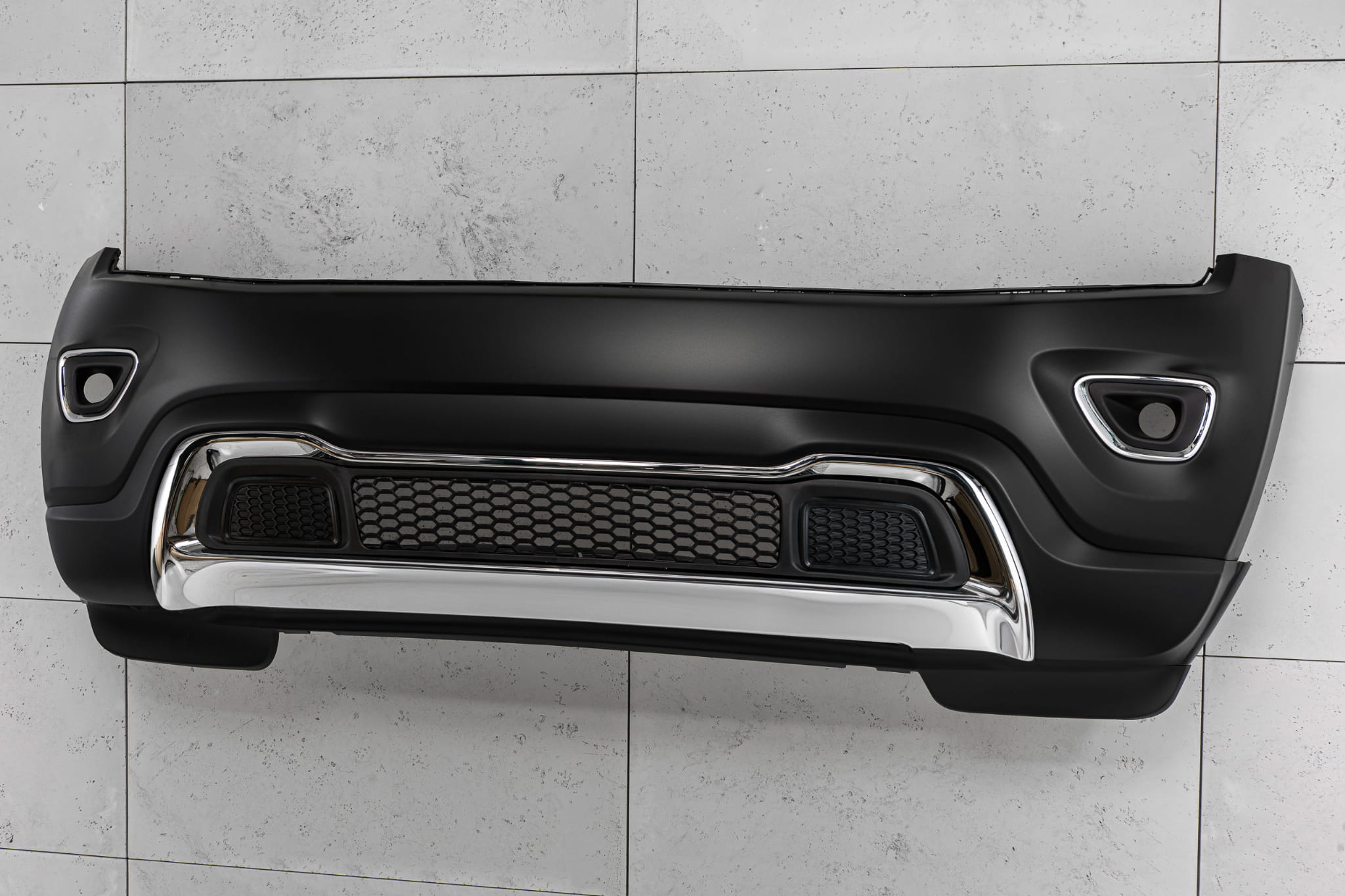 Kompletny zderzak przedni, dedykowany dla JEEP GRAND CHEROKEE IV (WK2) 2014-2017 (wersja po pierwszym faceliftingu). Pasuje do wersji LAREDO, LIMITED, OVERLAND, TRAILHAWK.