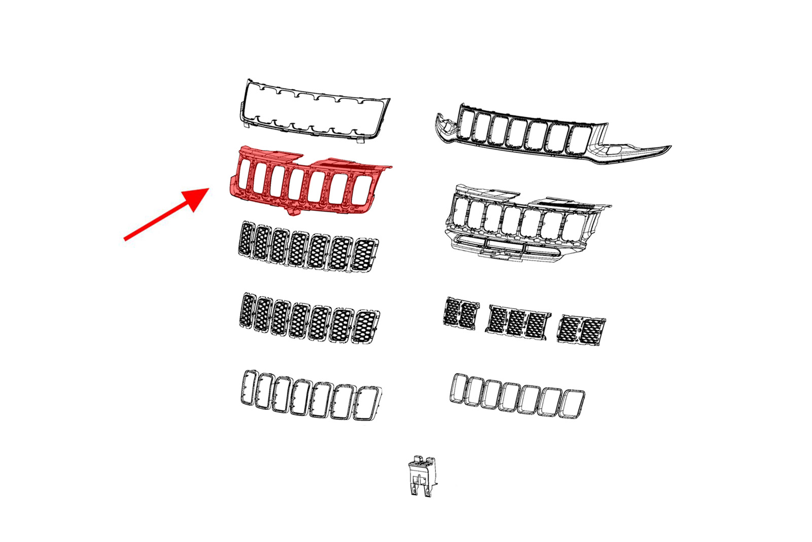 Mocowanie atrapy chłodnicy, grilla, dla JEEP GRAND CHEROKEE IV (WK2) 2017-2021 (wersja po drugim faceliftingu).