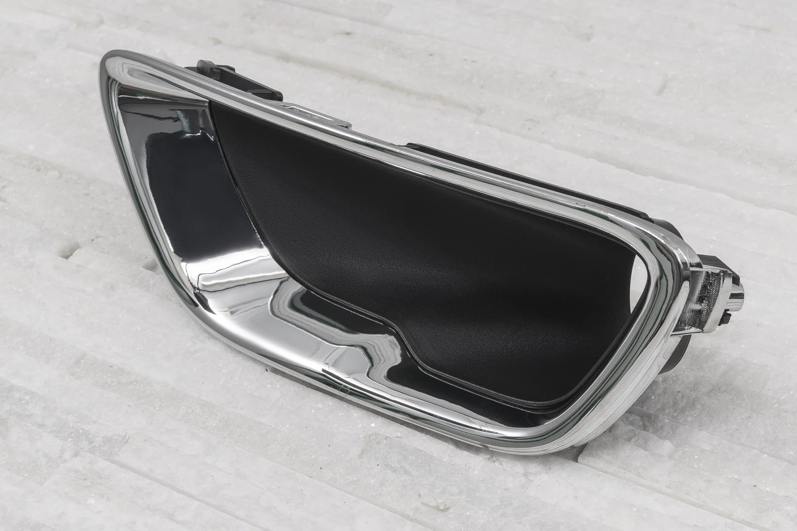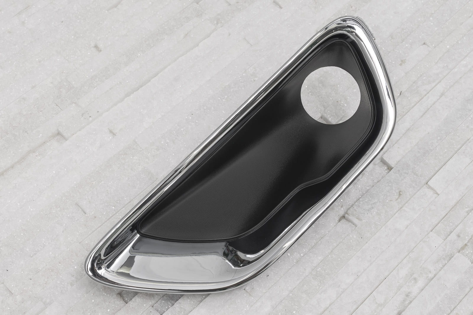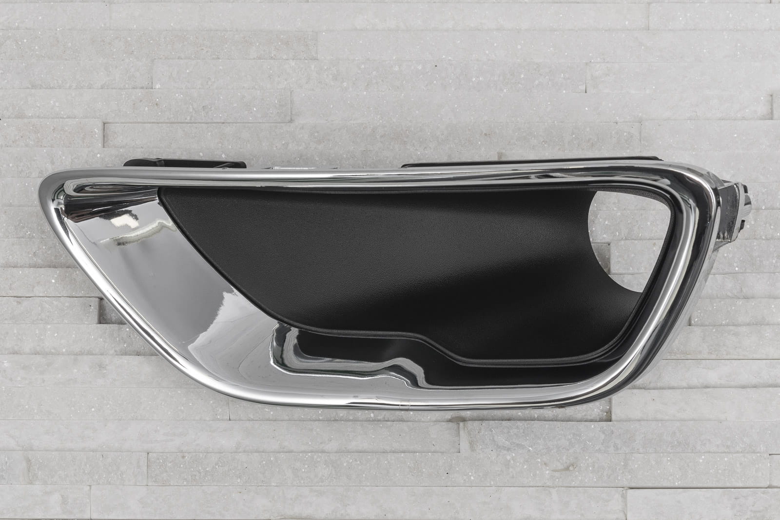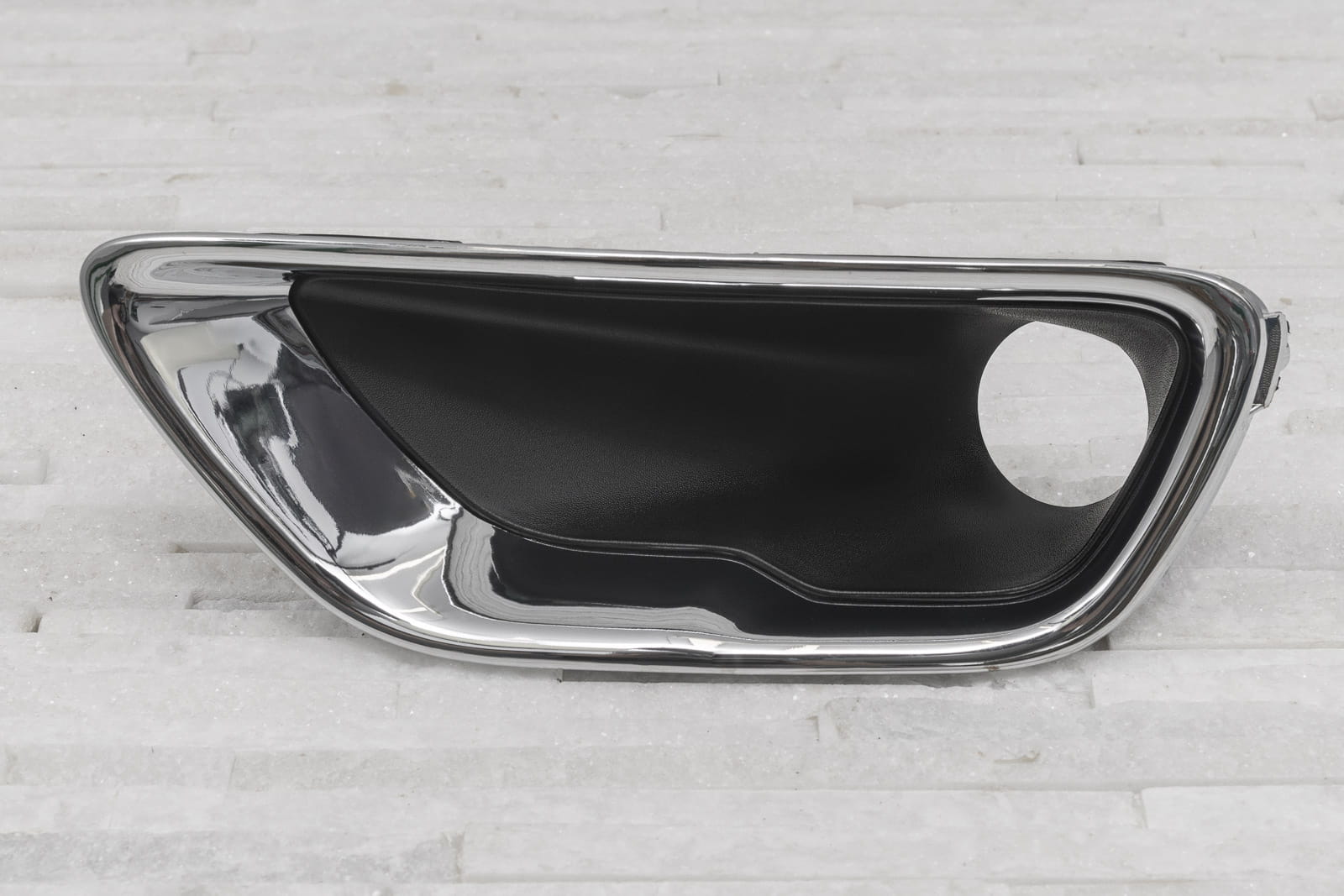 Chromowana zaślepka zderzaka / kratka zderzaka z otworem pod lampę, lewa, dla JEEP GRAND CHEROKEE IV (WK2) 2017-2021 (wersja po drugim liftingu). Pasuje do wersji LAREDO, LIMITED, OVERLAND, TRAILHAWK.