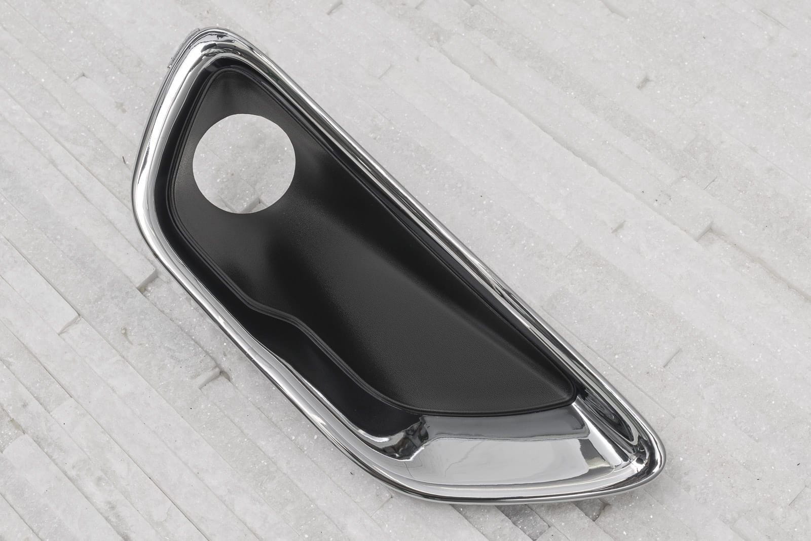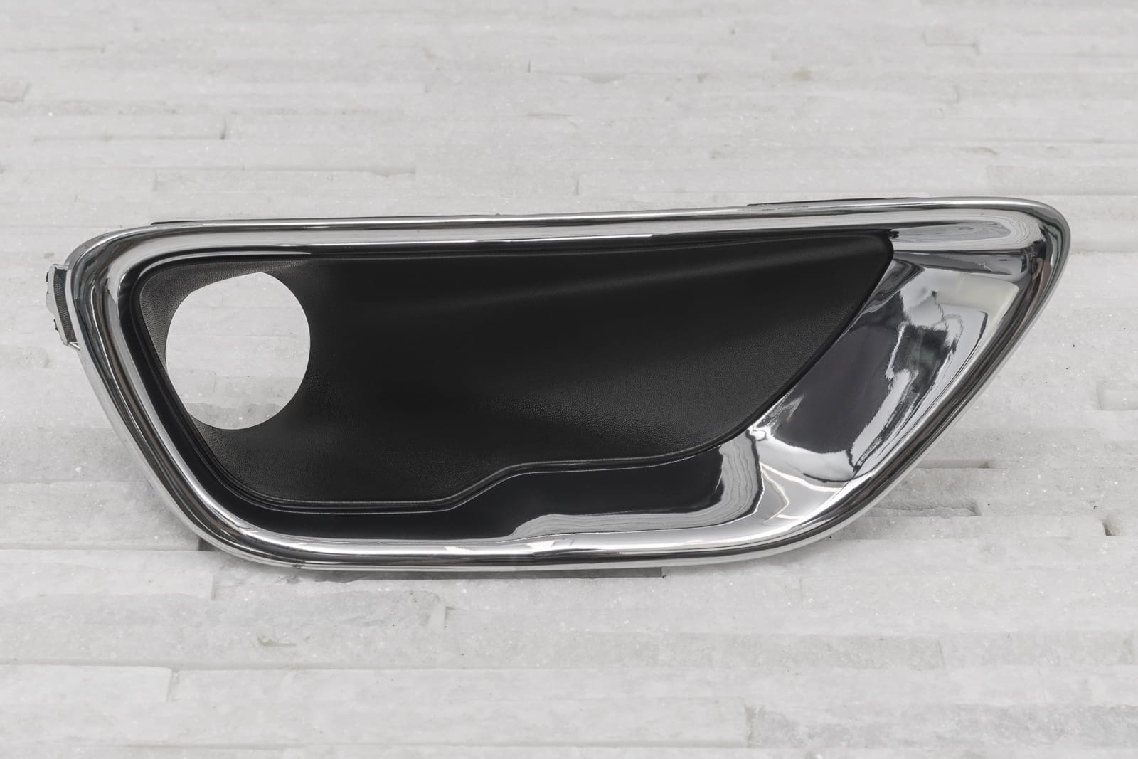Chromowana zaślepka zderzaka / kratka zderzaka z otworem pod lampę, prawą , dla JEEP GRAND CHEROKEE IV (WK2) 2017-2021 (wersja po drugim liftingu). Pasuje do wersji LAREDO, LIMITED, OVERLAND, TRAILHAWK.