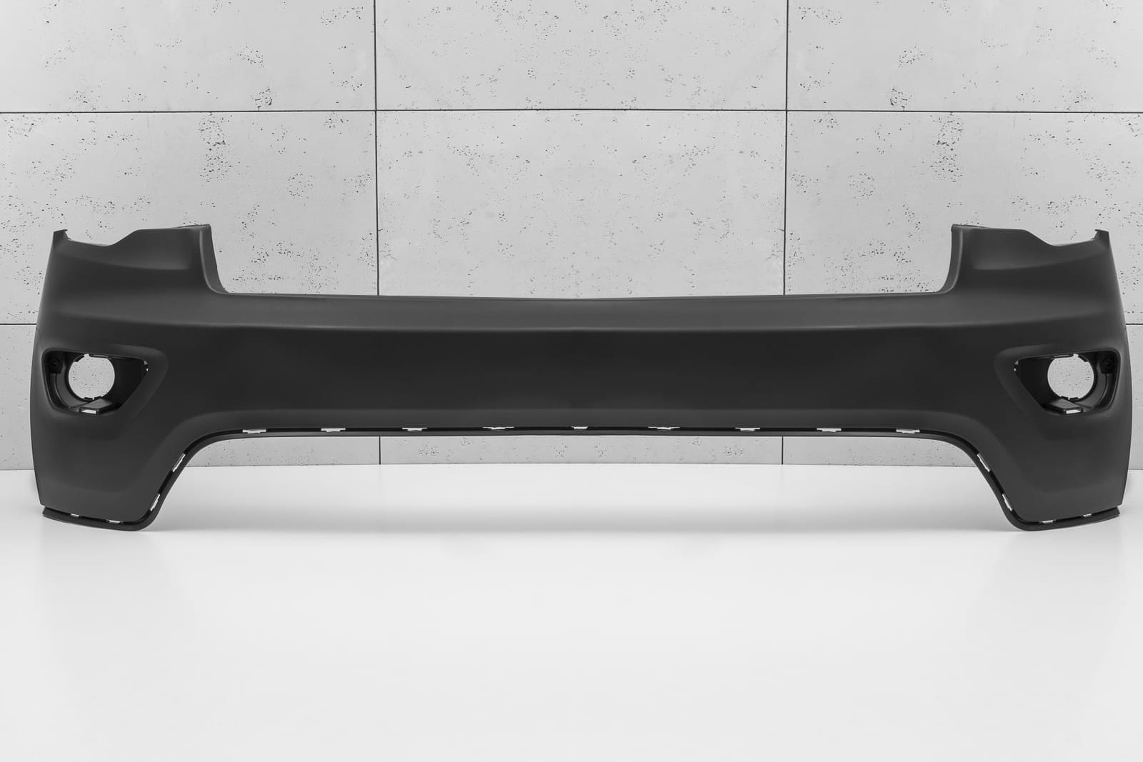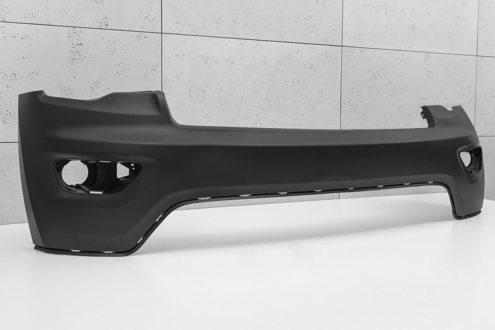 Zderzak przedni górny, dla JEEP GRAND CHEROKEE IV (WK2) 2017-2021 (wersja po drugim faceliftingu). Wersja bez otworów pod czujniki parkowania PDC i otworów pod spryskiwacze. Pasuje do wersji LAREDO, LIMITED, OVERLAND i TRAILHAWK.