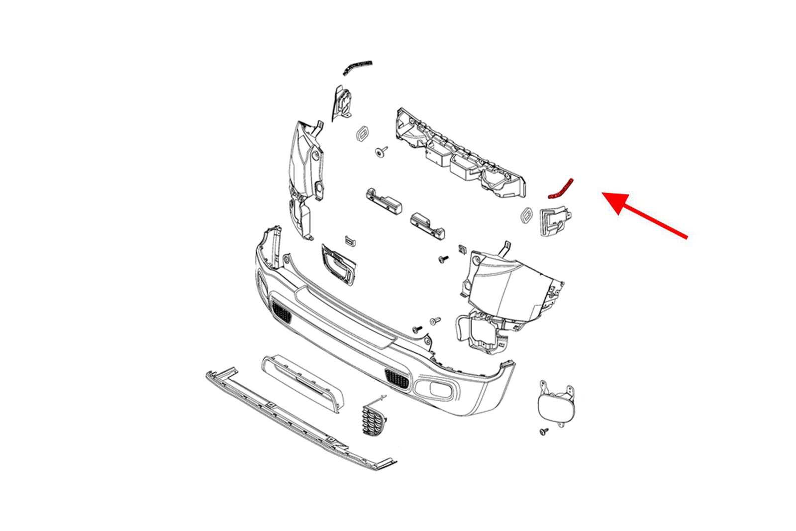 Element mocujący poszycie tylnego zderzaka / ślizg prawy, dla JEEP RENEGADE I (BU) 2015+.