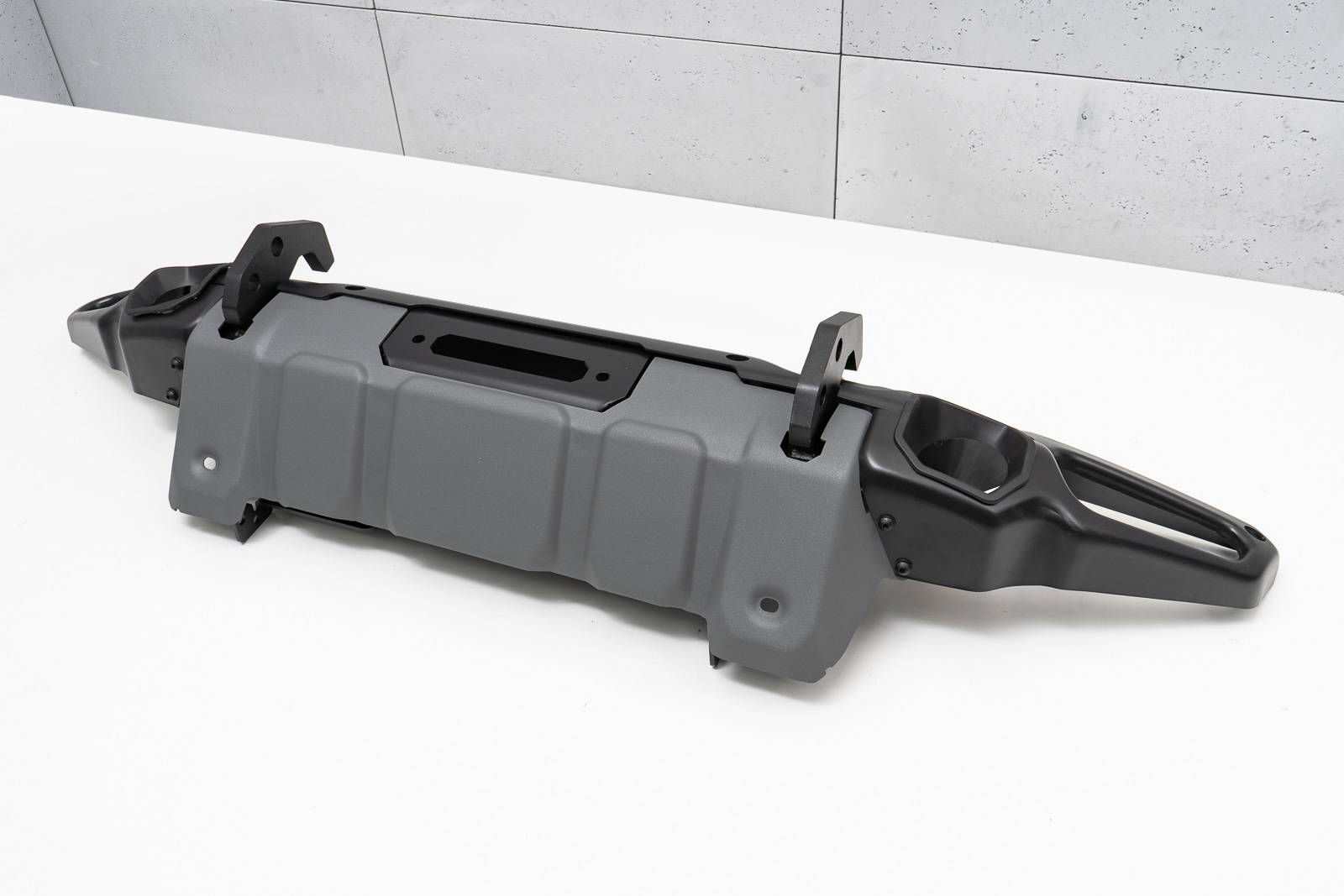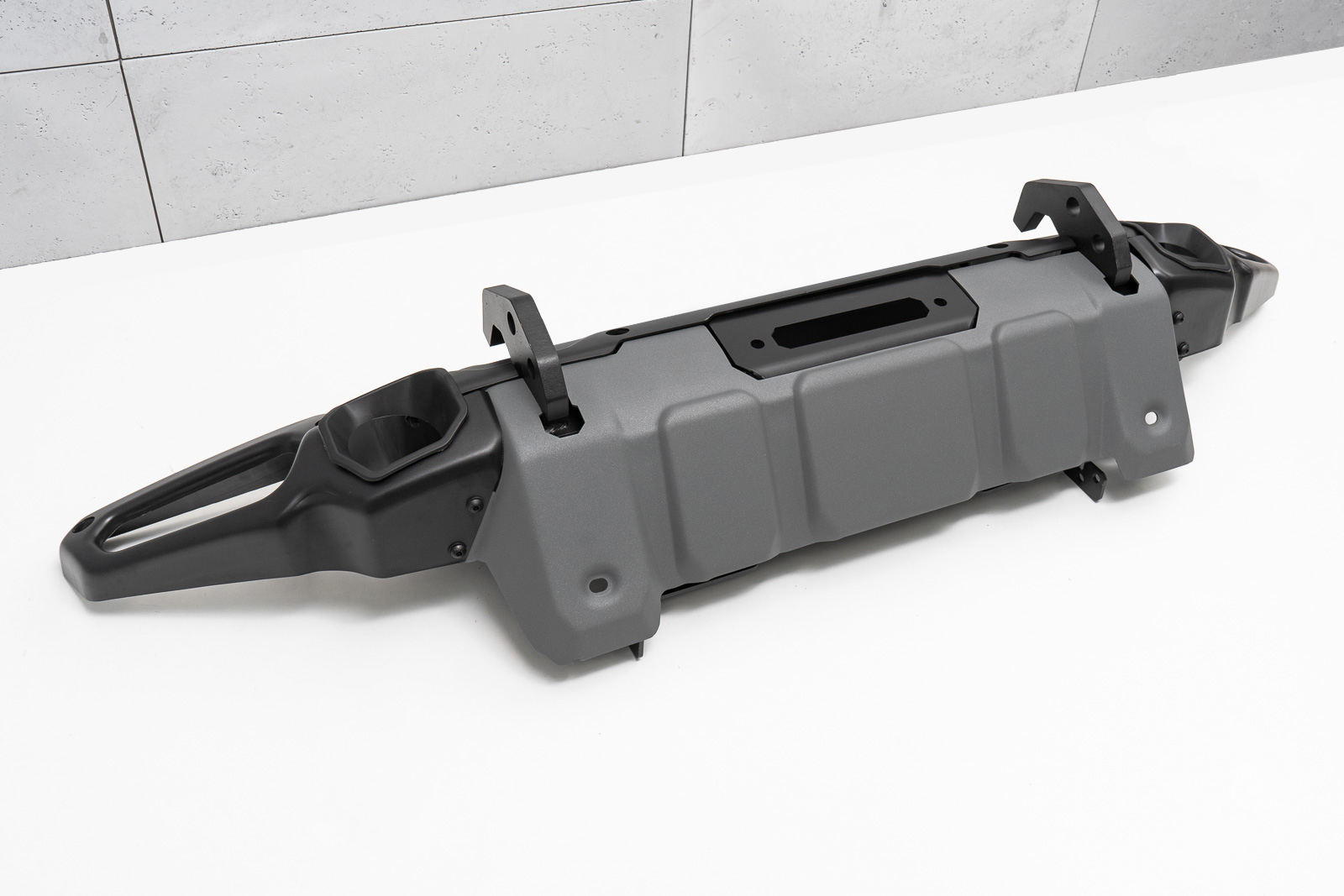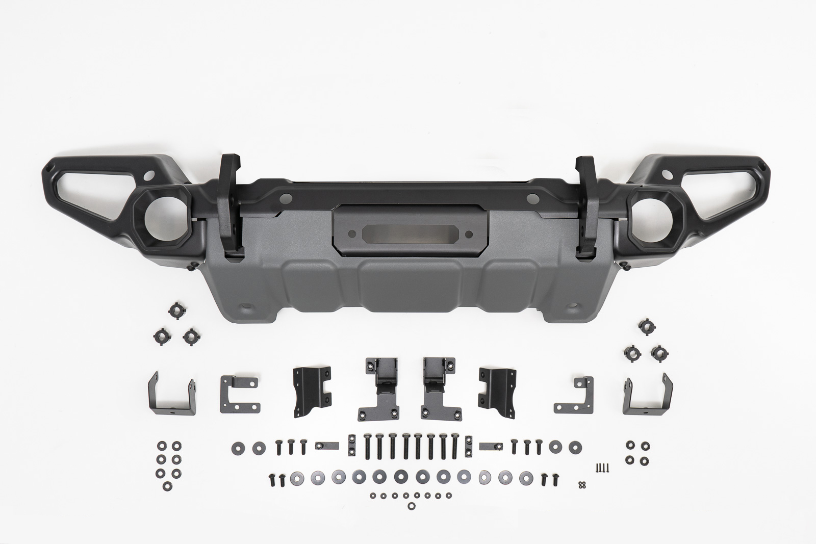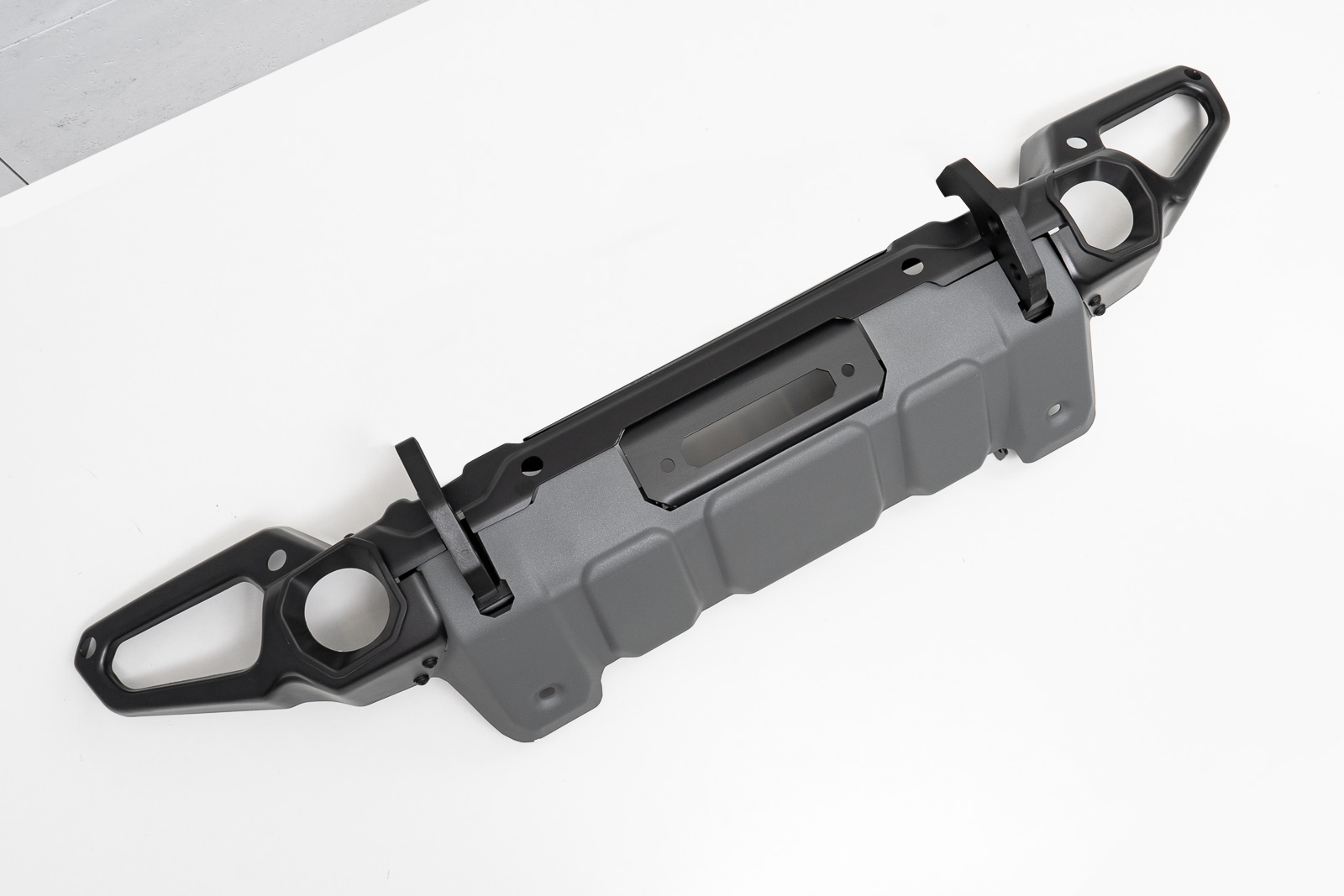 Przedni zderzak model HUNTER z PDC, przeznaczony dla JEEP WRANGLER JL 2018+. Zderzak posiada otwory pod czujniki parkowania PDC.