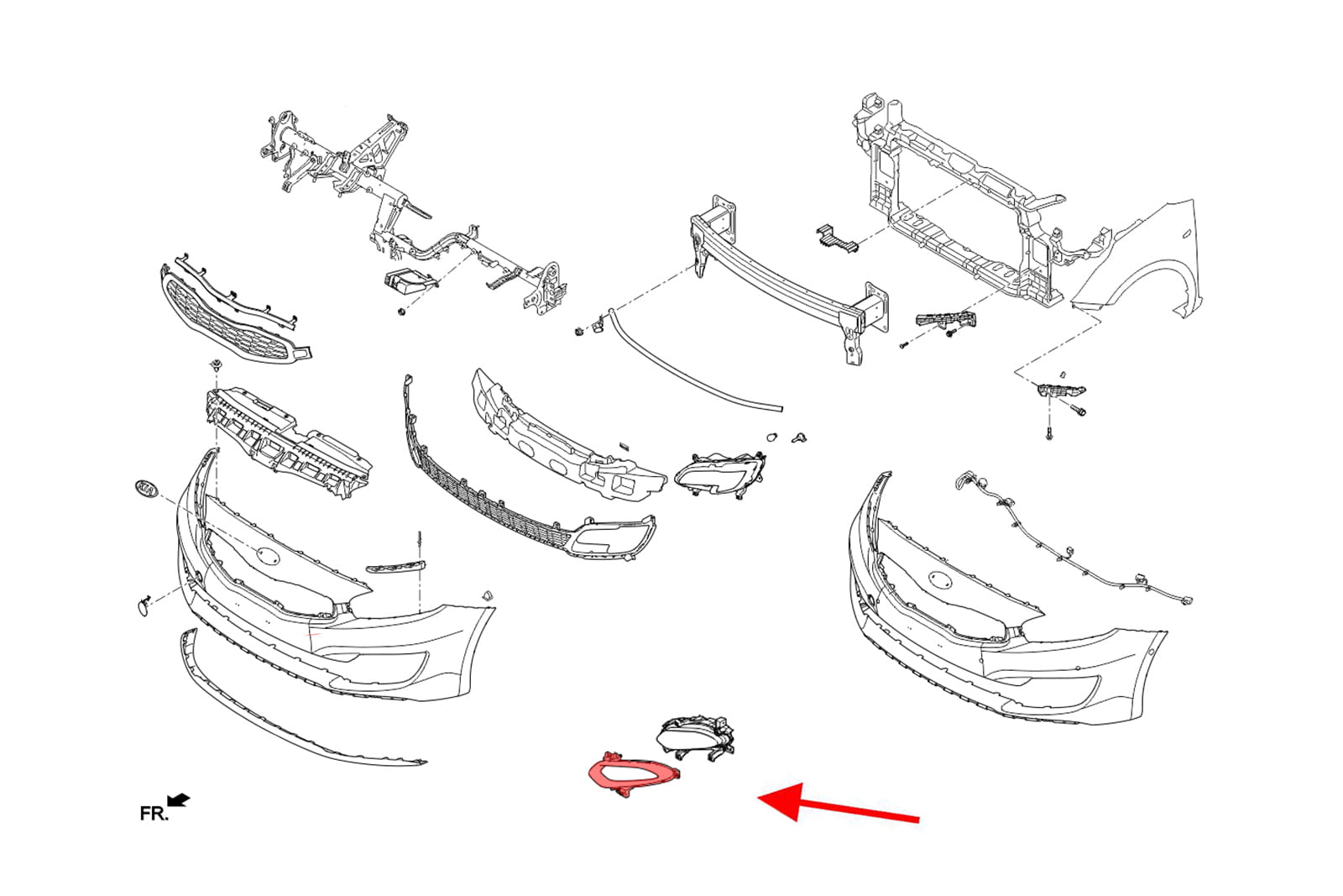 Zaślepka zderzaka, kratka z otworem pod przednią podwójną, lampę przeciwmgielną, lewa, dla KIA CEED II (JD) 2012-2015 (w wersji przed liftingiem).