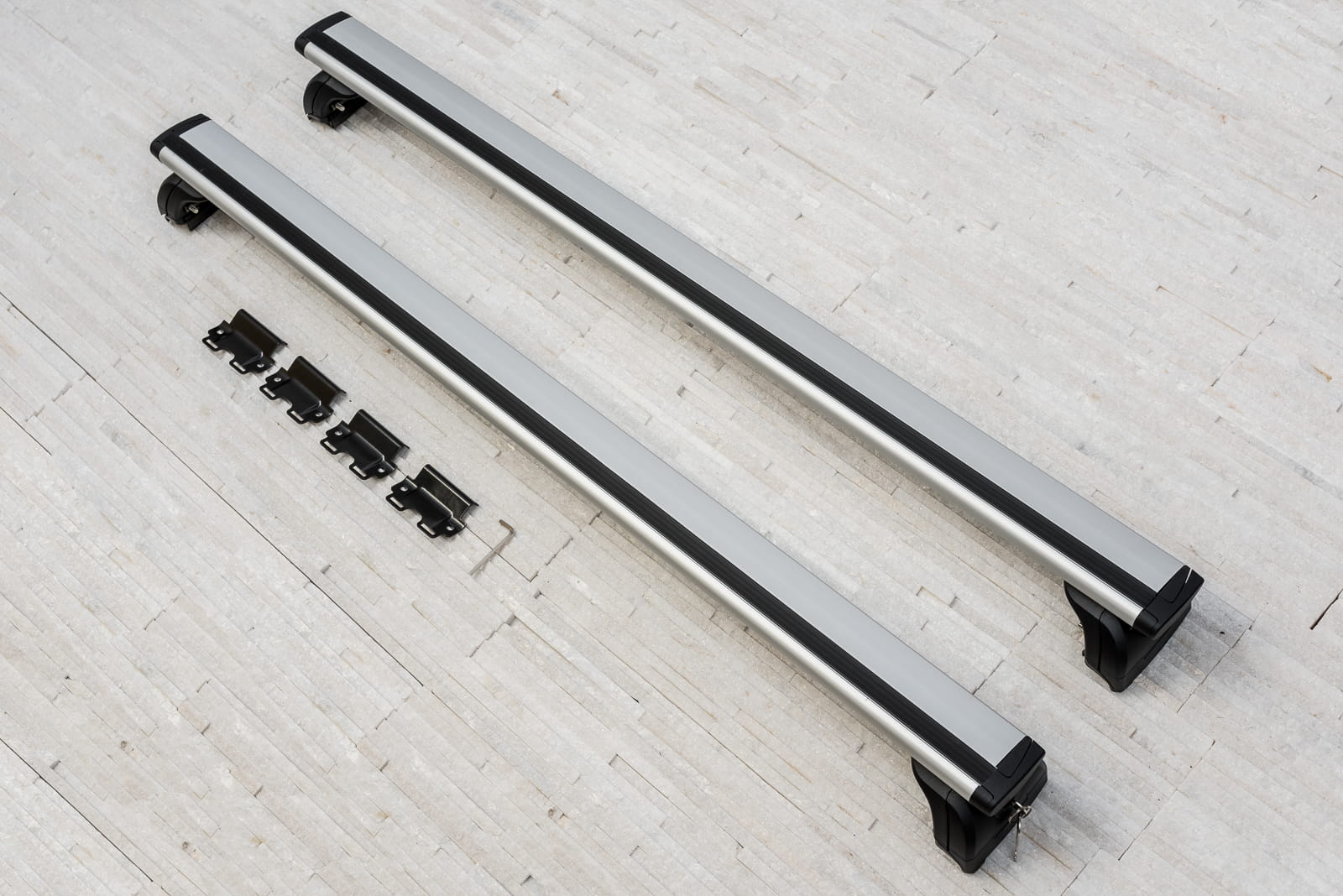 Produkt fabrycznie nowy, oryginalnie zapakowany, w kolorze srebrnym. W komplecie znajdują się: dwie belki, dwa kluczyki oraz klucz imbusowy.