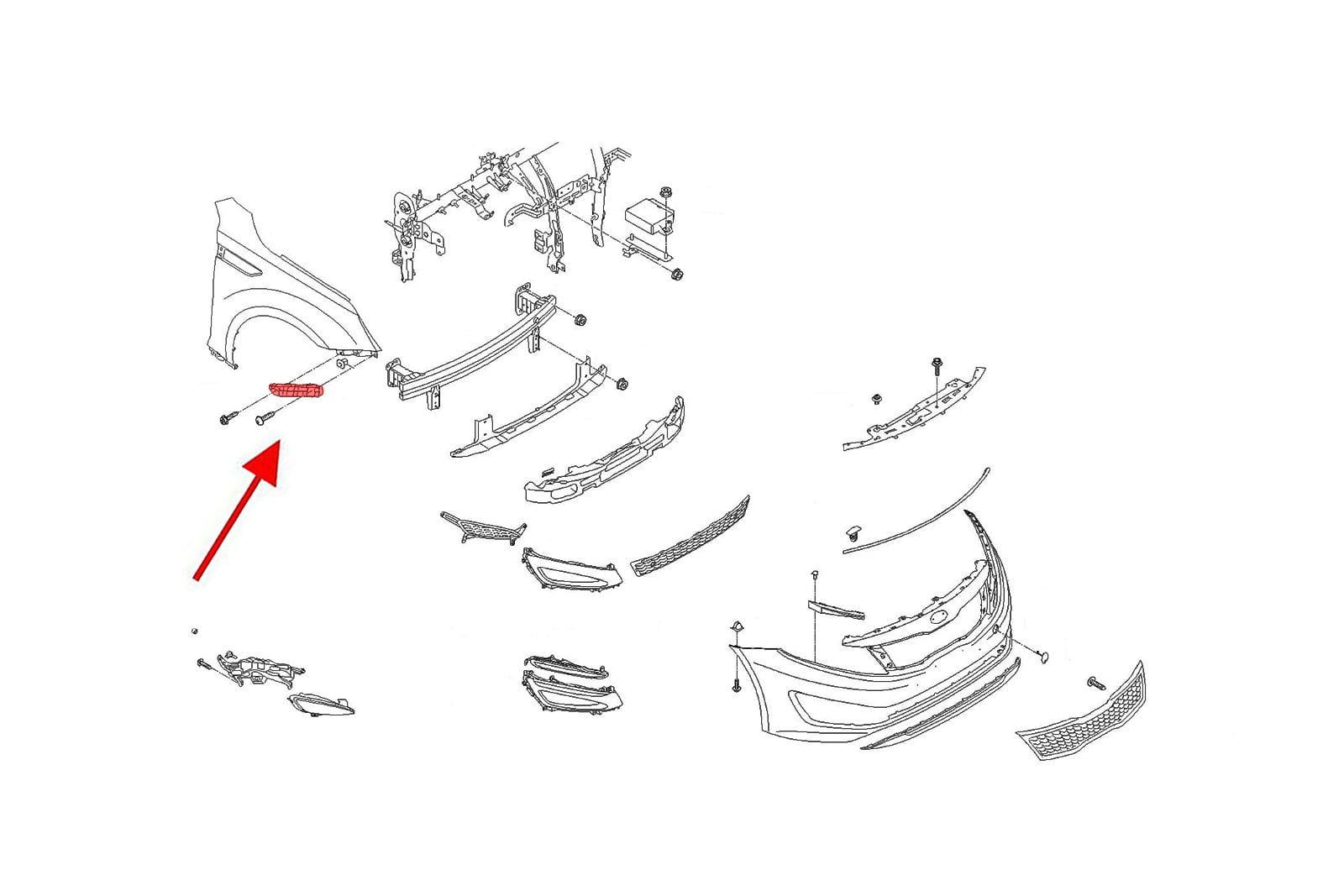 Element mocujący poszycie zderzaka przedniego, ślizg prawy, dla KIA OPTIMA III (TF) 2010-2013 (wersja przed liftingiem).