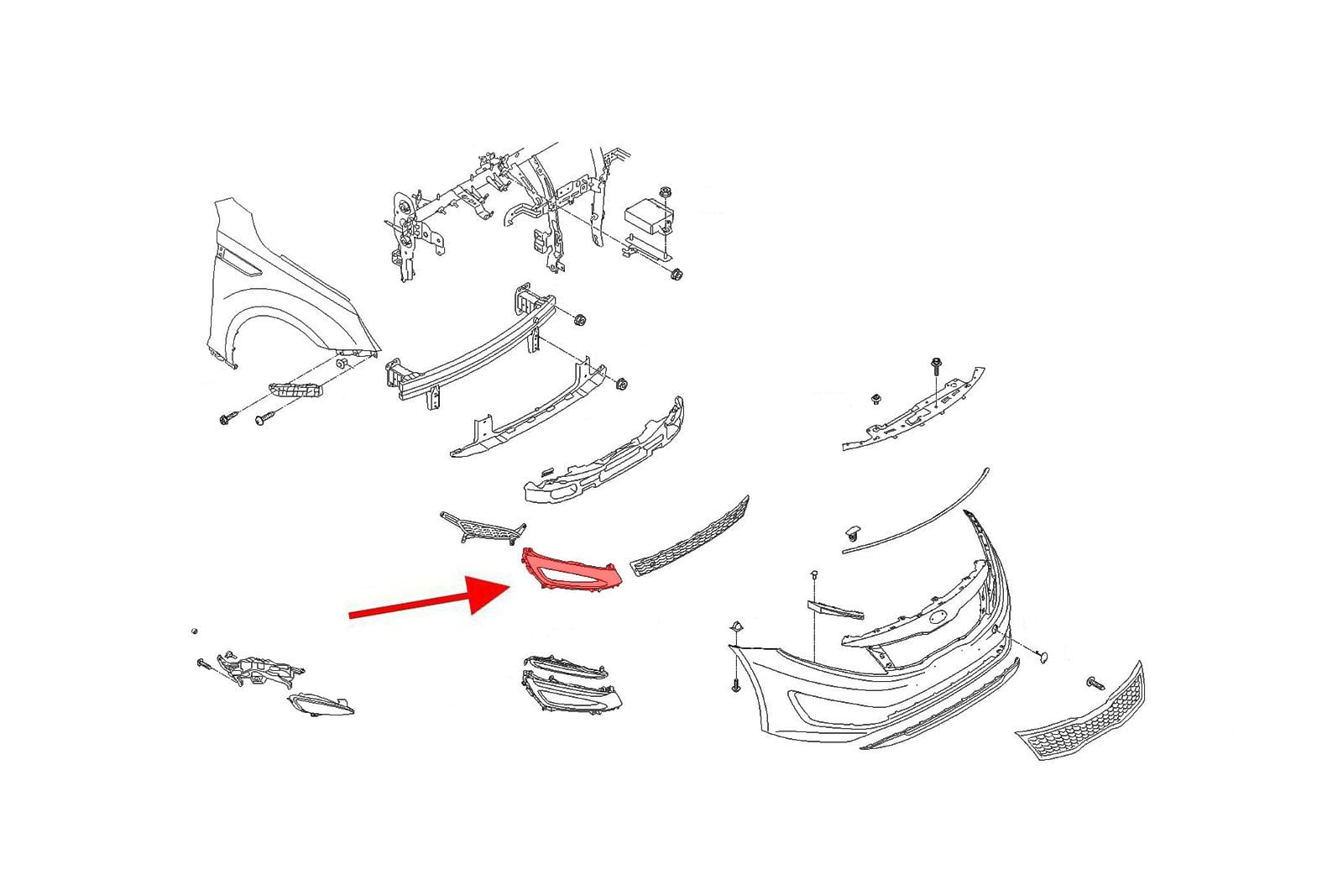 Zaślepka zderzaka, kratka halogenu przedniego prawa, dla KIA OPTIMA III (TF) 2010-2013 (wersja przed liftingiem bez DRL).