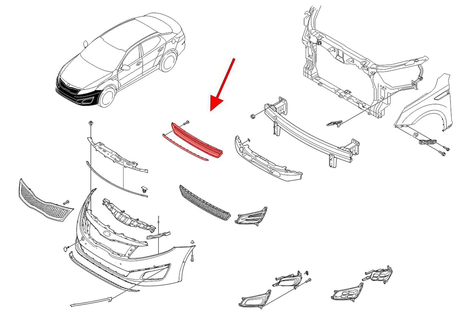 Kratka przedniego zderzaka, środkowa, dla KIA OPTIMA III (TF) 2013-2015 (wersja po liftingu).