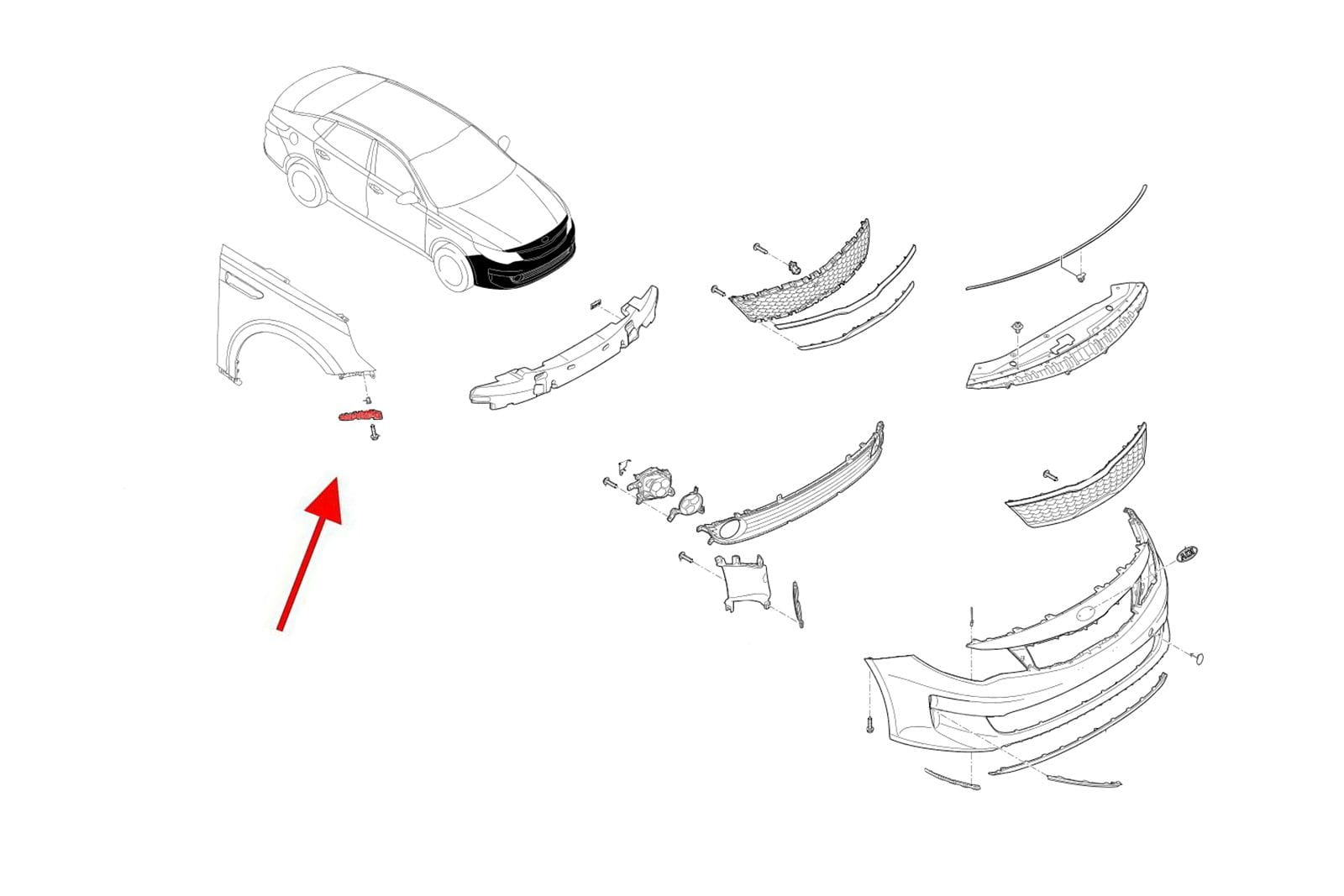 Element mocujący poszycie zderzaka przedniego, ślizg prawy, dla KIA OPTIMA IV (JF) 2018-2020 (wersja po faceliftingu).