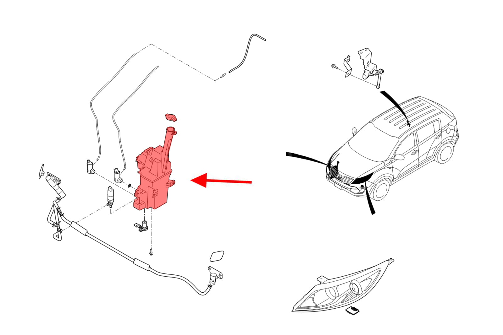 Zbiornik płynu spryskiwacza, dla KIA SPORTAGE III (SL) 2010-2015.