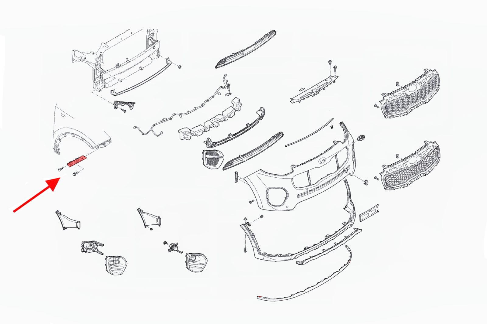 Element mocujący poszycie zderzaka przedniego, ślizg prawy, dla KIA SPORTAGE IV (QL) 2016-2021.