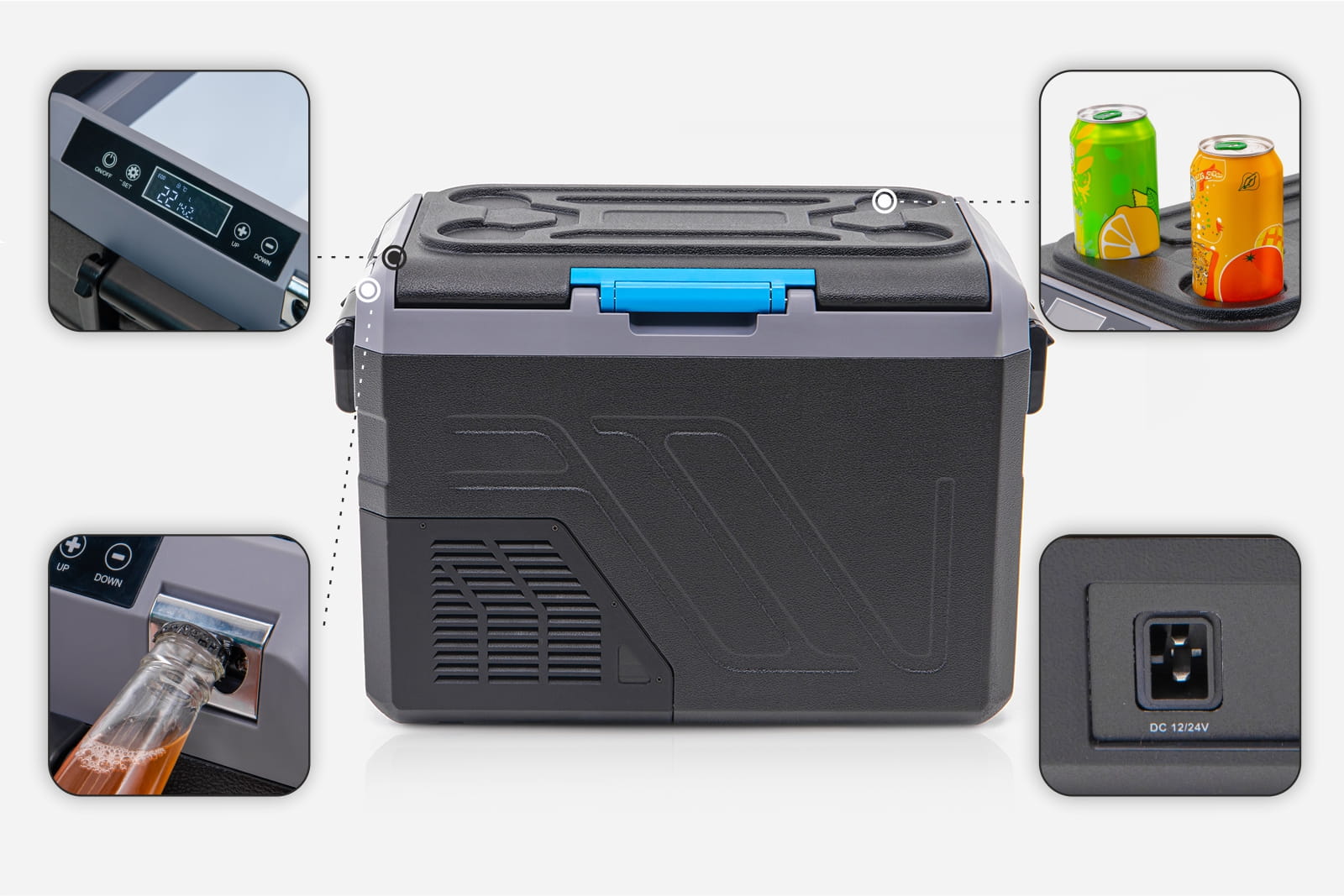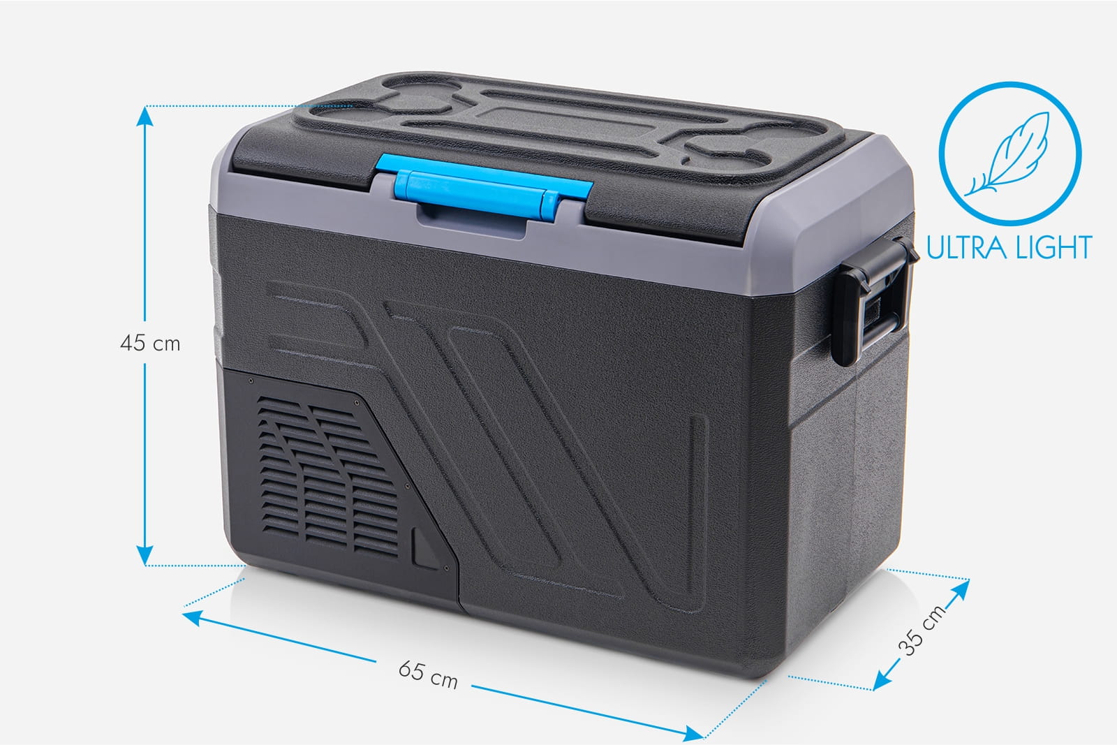 Przenośna lodówko-zamrażarka może być podłączona do gniazdka zapalniczki o napięciu 12V-24V, co umożliwia jej mobilne użytkowanie we wszystkich pojazdach (działa również z adapterem 220V). Dzięki wysokiej klasy izolacji oraz wydajnemu kompresorowi proces chłodzenia w lodówko-zamrażarce przebiega wyjątkowo szybko. Doskonale sprawdzi się podczas pikniku, wędkowania, na plaży czy w podróży umożliwiając przechowywanie żywności przez długi czas. Opatentowany system wentylacji zapewnia równomierne rozmieszczenie powietrza wewnątrz komory, utrzymując produkty w optymalnej kondycji. Dodatkowo, wbudowany termometr i termostat umożliwiają Ci pełną kontrolę nad temperaturą. Przenośna lodówko-zamrażarka może być używana w temperaturze od -20°C do +18°C. Wbudowana lampka daje dużą widoczność i pozwala na swobodne korzystanie z lodówki nawet po zmierzchu.