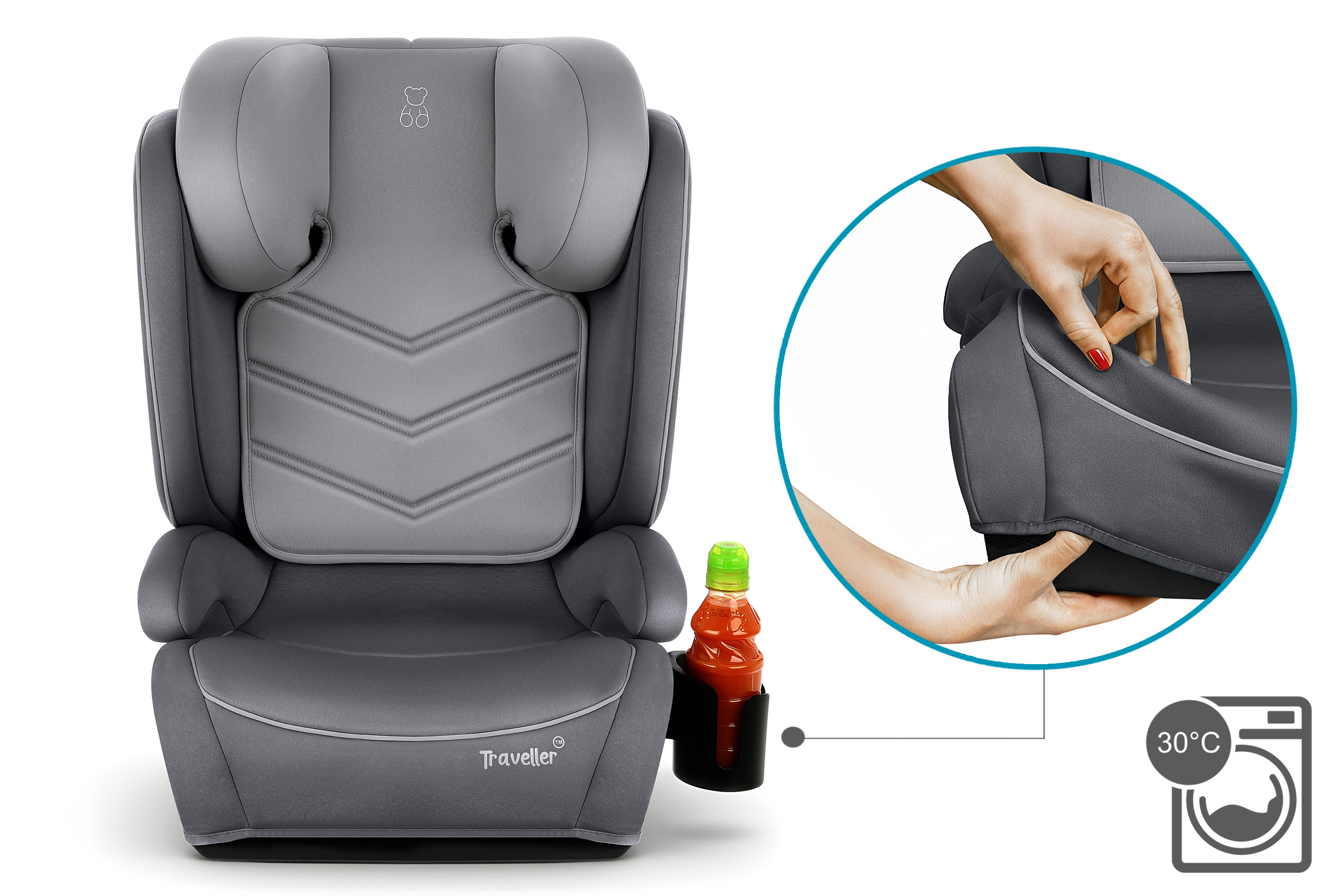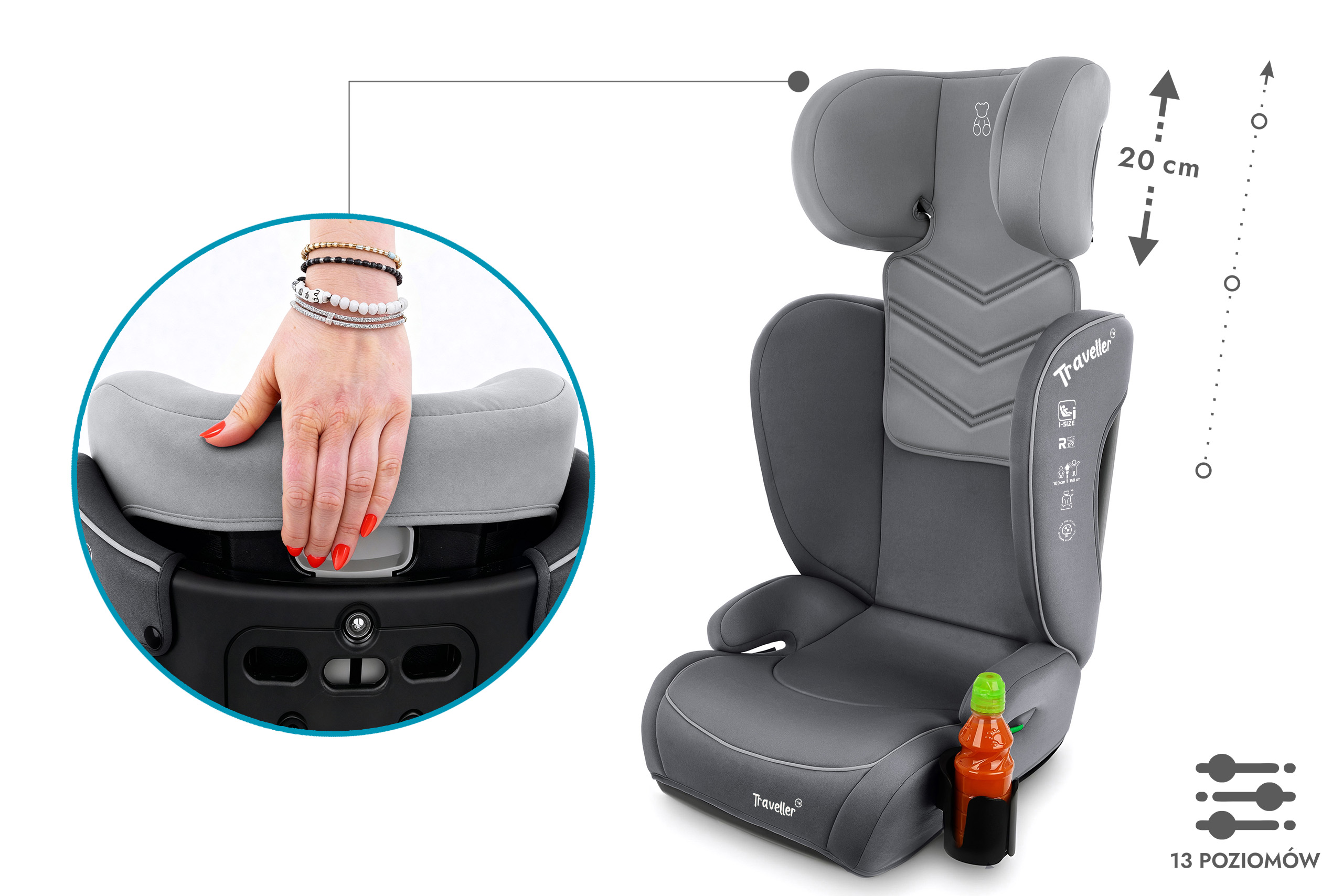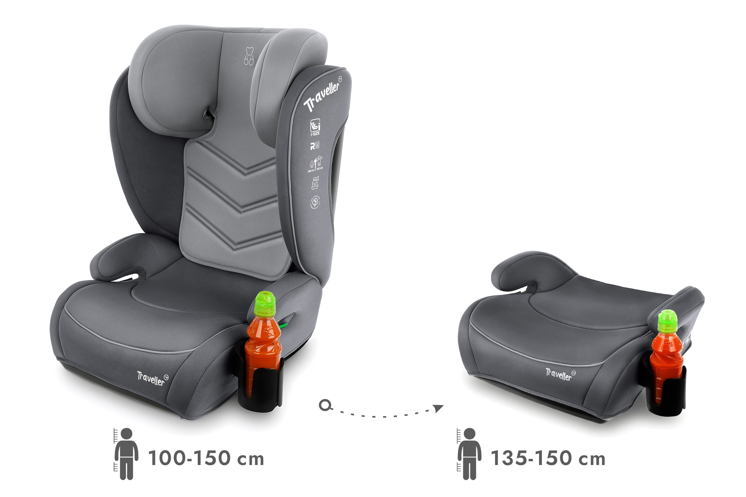 Fotelik rośnie razem z dzieckiem i może być użytkowany do momentu osiągnięcia 150 cm wzrostu (ok. 12 roku życia).
